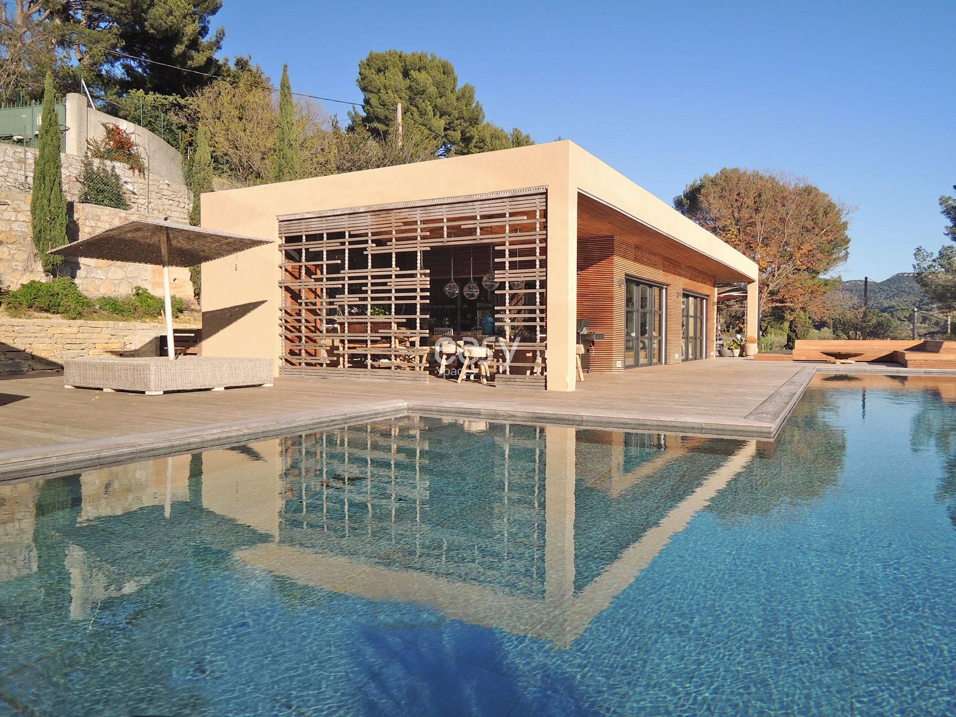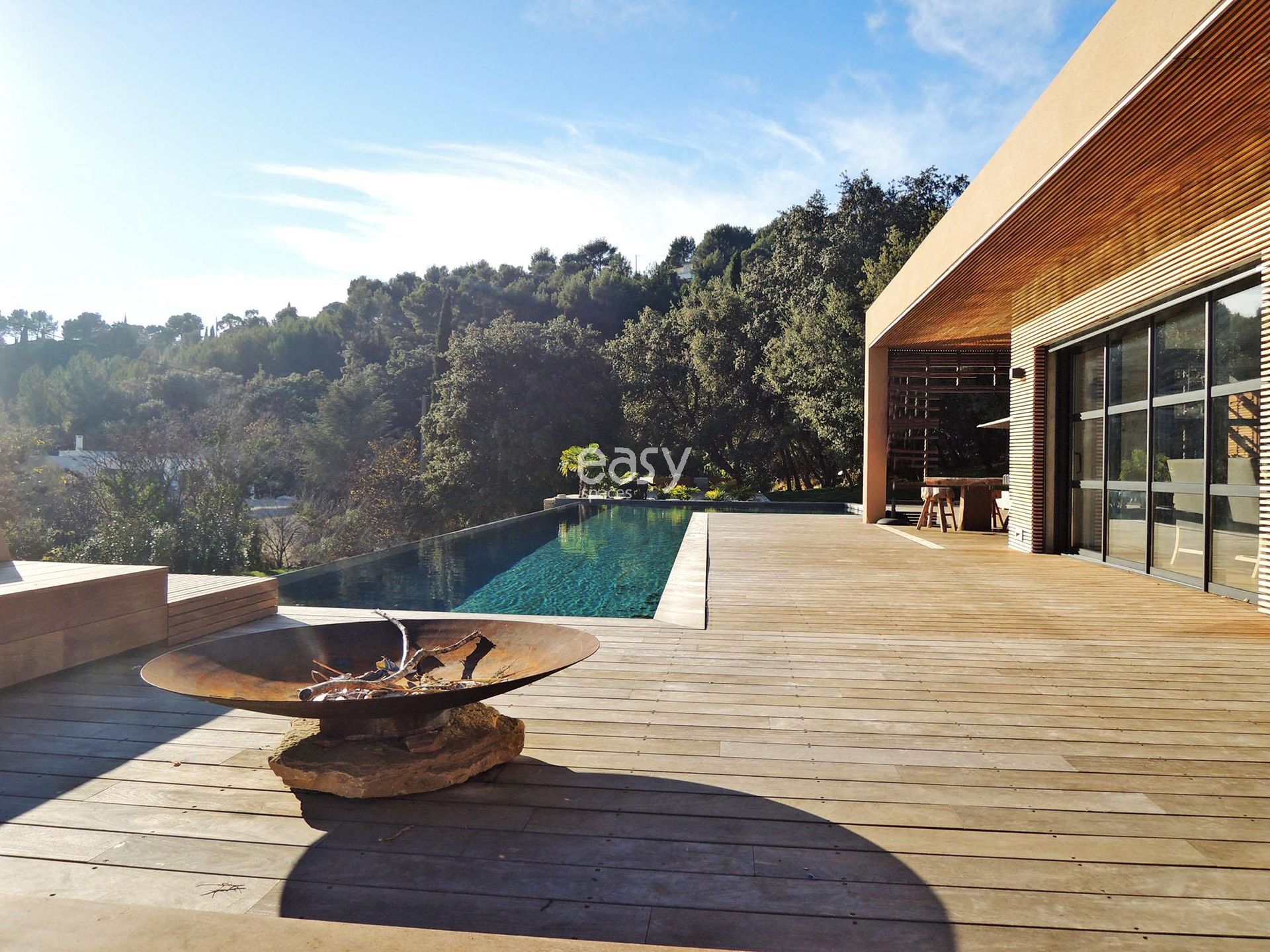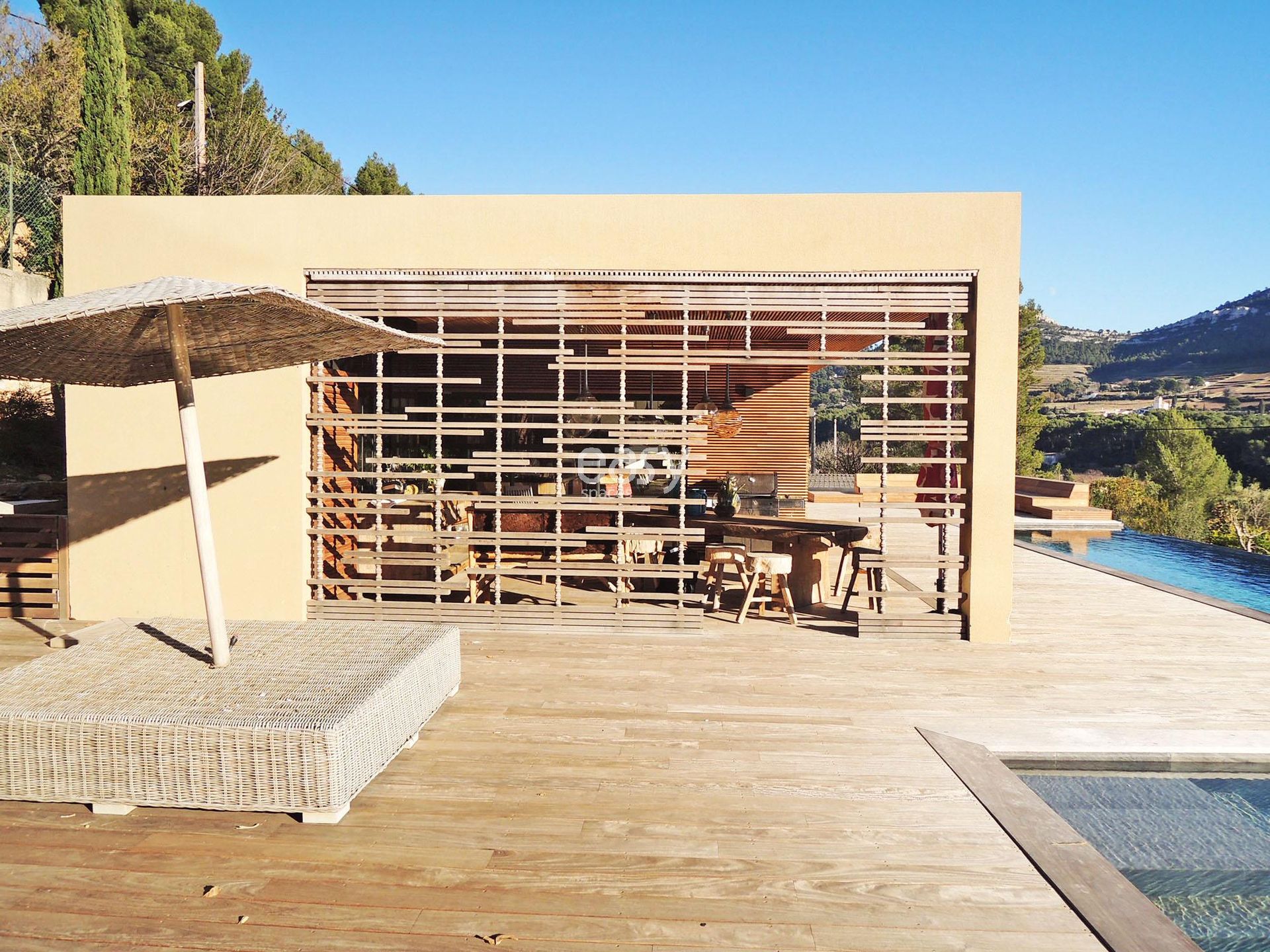 Maison Atypique à louer pour shooting photo ou tournage de film près de Marseille en Région PACA. Cette belle villa contemporaine possède un vrai cachet et un décor très chaleureux grâce à la mise en valeur de sa matière première : le Bois. Ses beaux espaces intérieurs et sa piscine à débordement avec vue imprenable en font un lieu de tournage idéal.