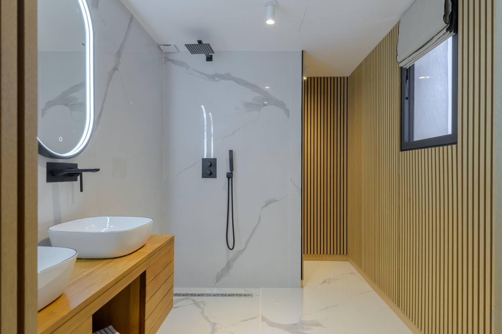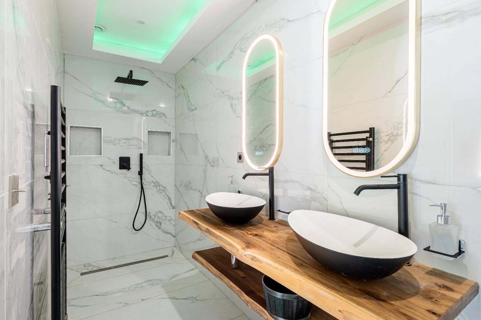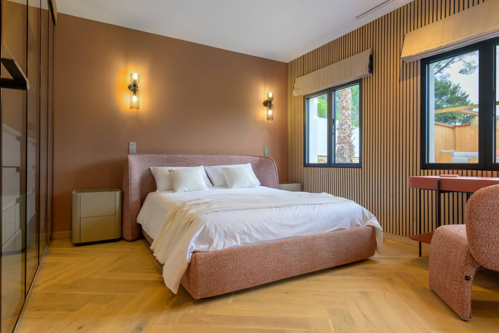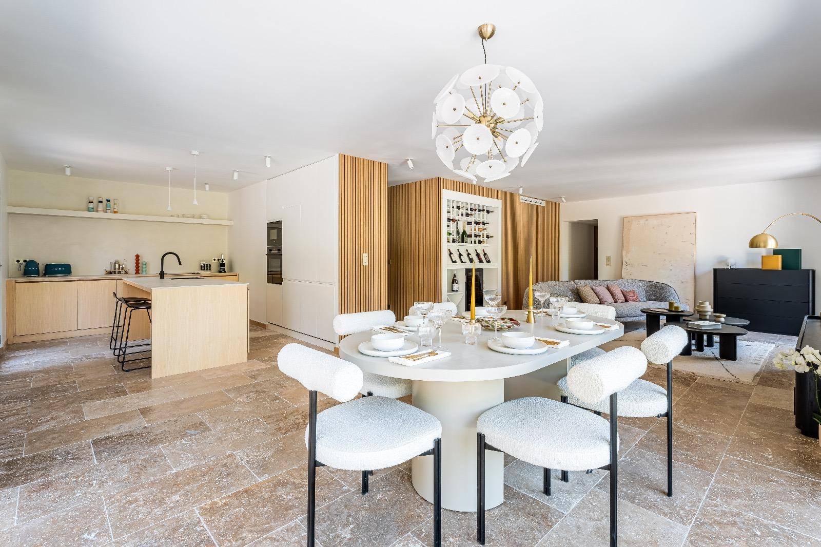 La décoration intérieure est pensée dans un style contemporain et épuré, avec des matériaux sobres, des lignes nettes et des touches chaleureuses, créant un univers visuel polyvalent, propice aux shooting photo ou aux tournages publicitaires.