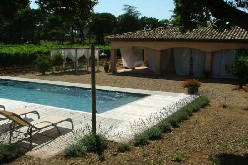 Cette villa est une maison classique possédant une piscine, une terrasse en gravier et un petit terrain localisée près de Saint-Tropez en région Provence Alpes Côte d'Azur. Le contour en bois de la piscine fais un magnifique lieu pour des prises de vues photos ou des tournages de films. Un lieu d'exception à la location dans le sud de la France.