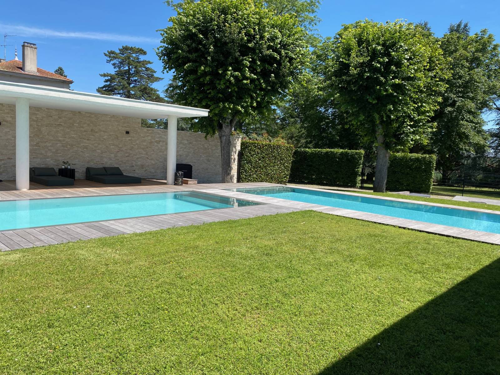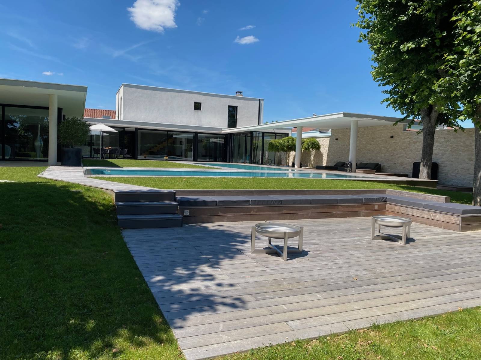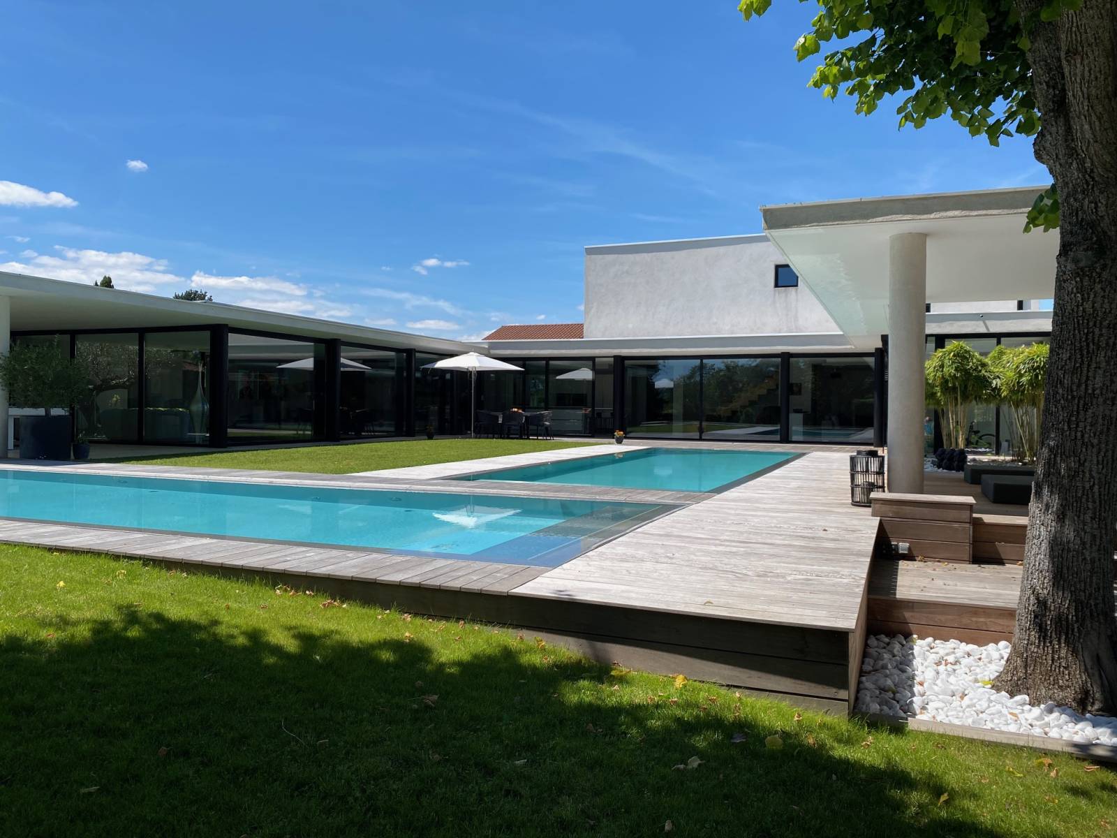 En extérieur son jardin plat et sa double piscine offre également de multiples possibilités et plusieurs ambiances inspirantes pour un shooting mobilier outdoor, tournage de long ou court métrage etc…