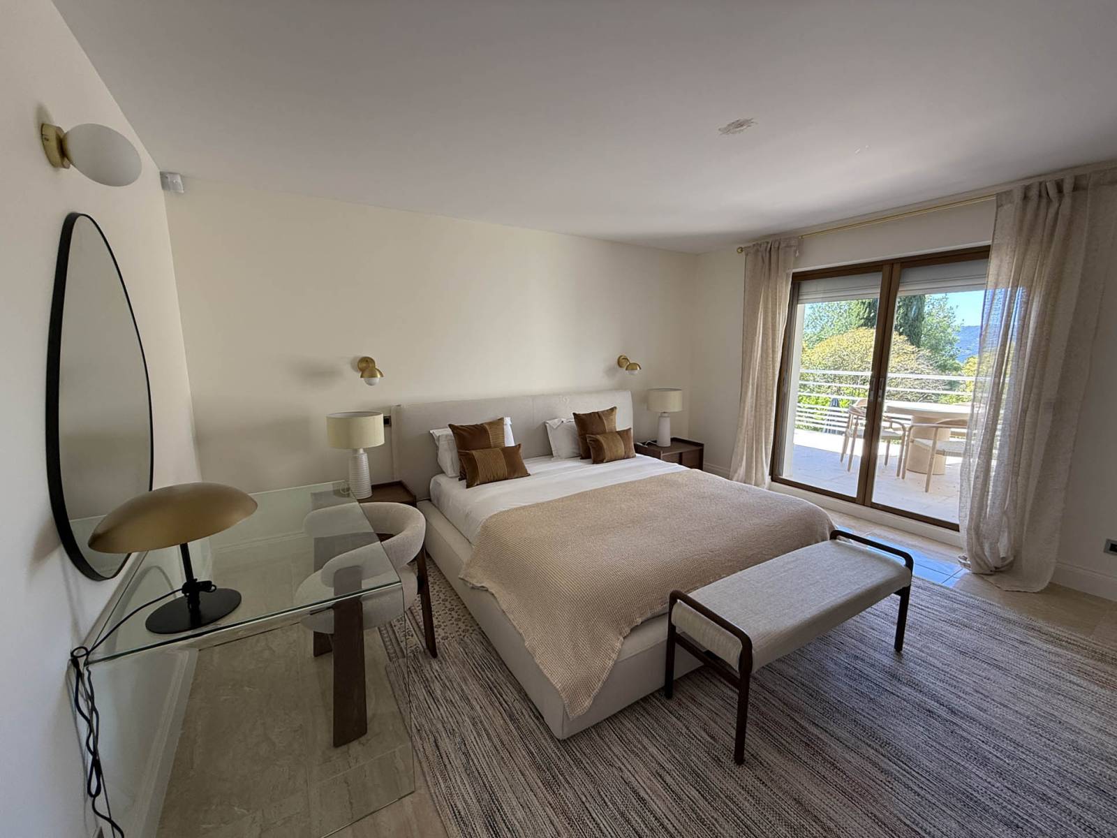 Le mobilier d’extérieur, à la fois sobre et chic, complète parfaitement ce décor aux lignes pures.