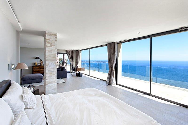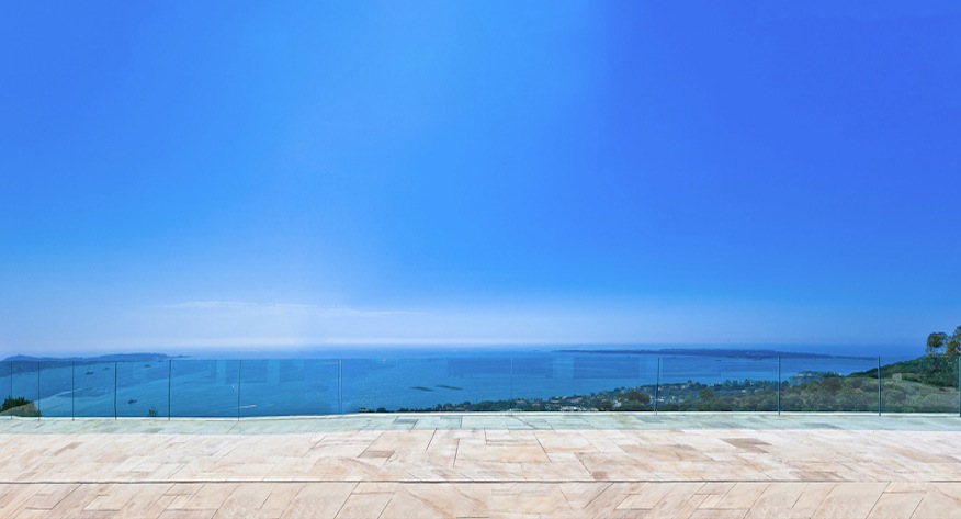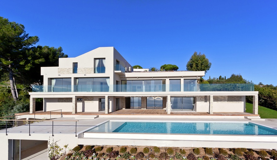 Ici, la maison NOCHA, dotée d ' une très belle piscine avec vue mer panoramique sur la grande bleue. Beaux volumes, belles terrasses, et décoration résolument contemporaine. Un magnifique décor en location à Cannes sur la Côte d ' Azur.