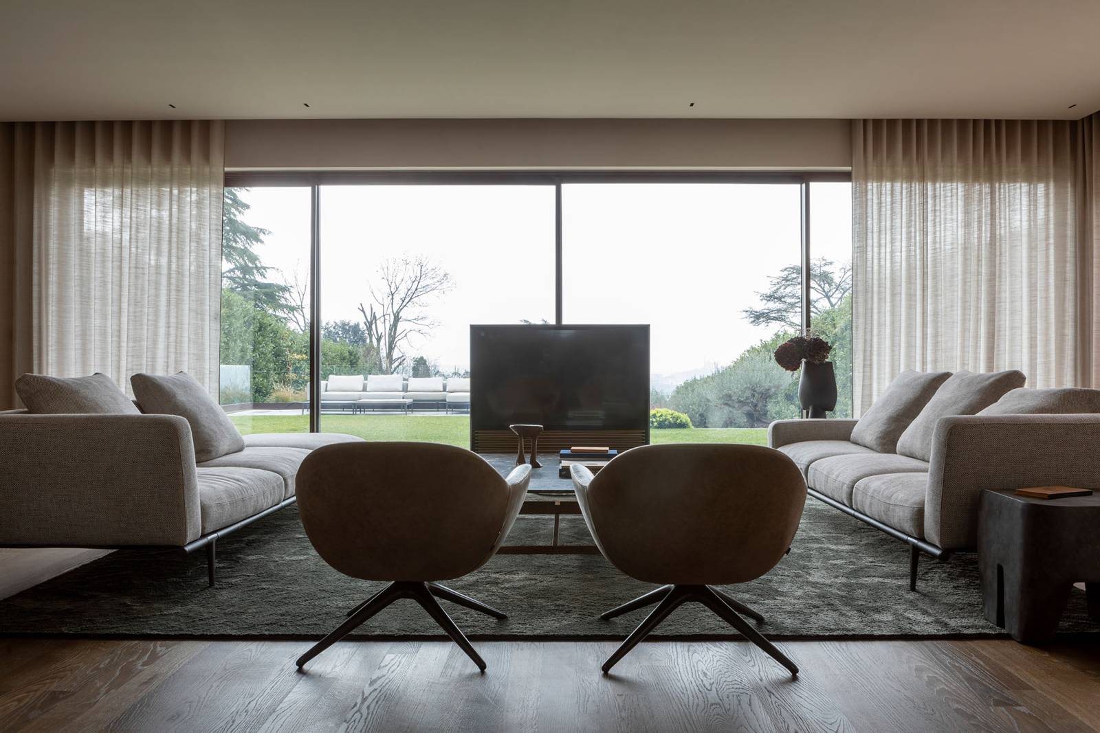 Avec ses grands espaces lumineux et sa décoration épurée, cette villa offre un cadre unique et inspirant pour mettre en valeur des décors ou du mobilier de jardin.