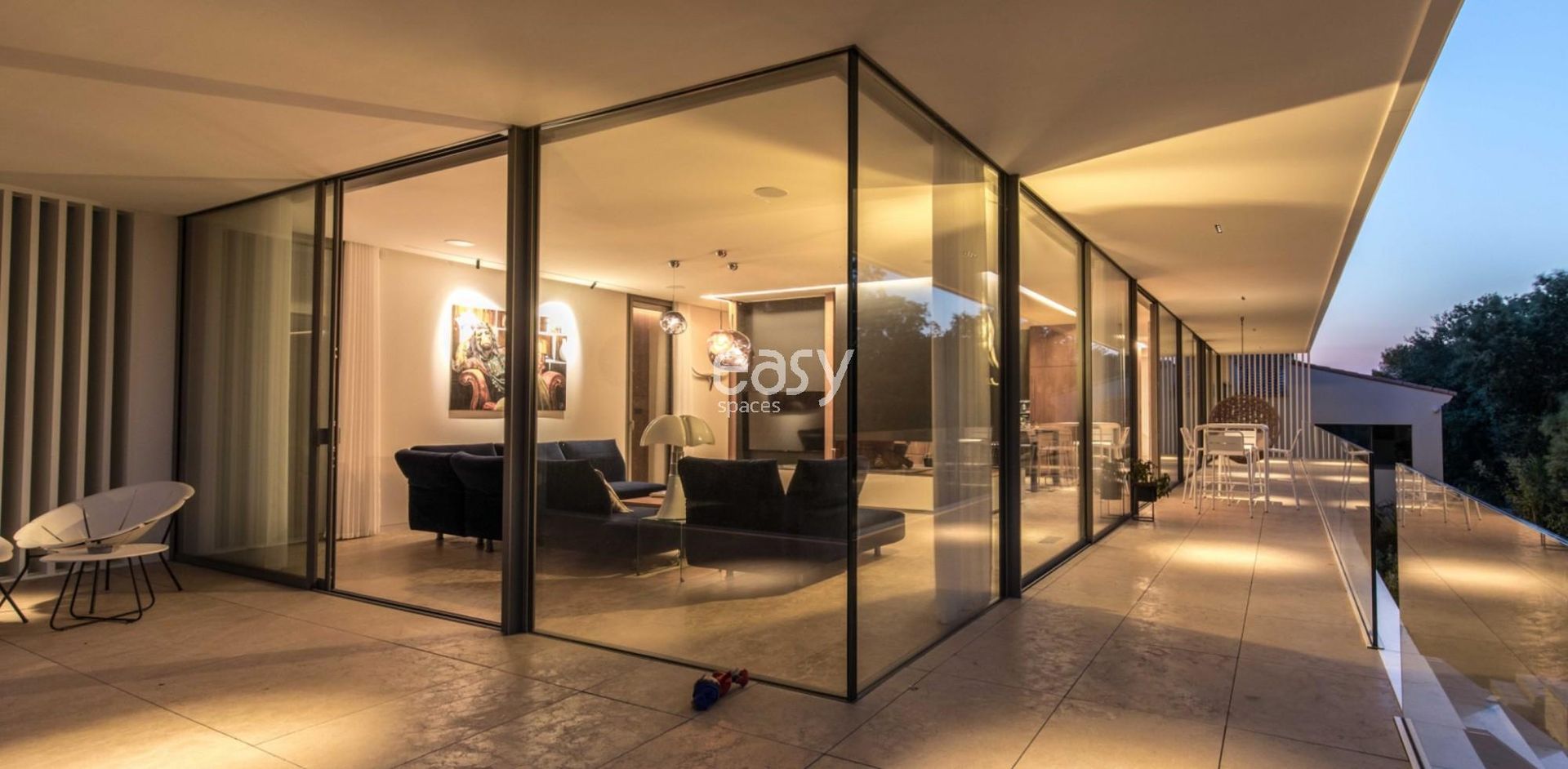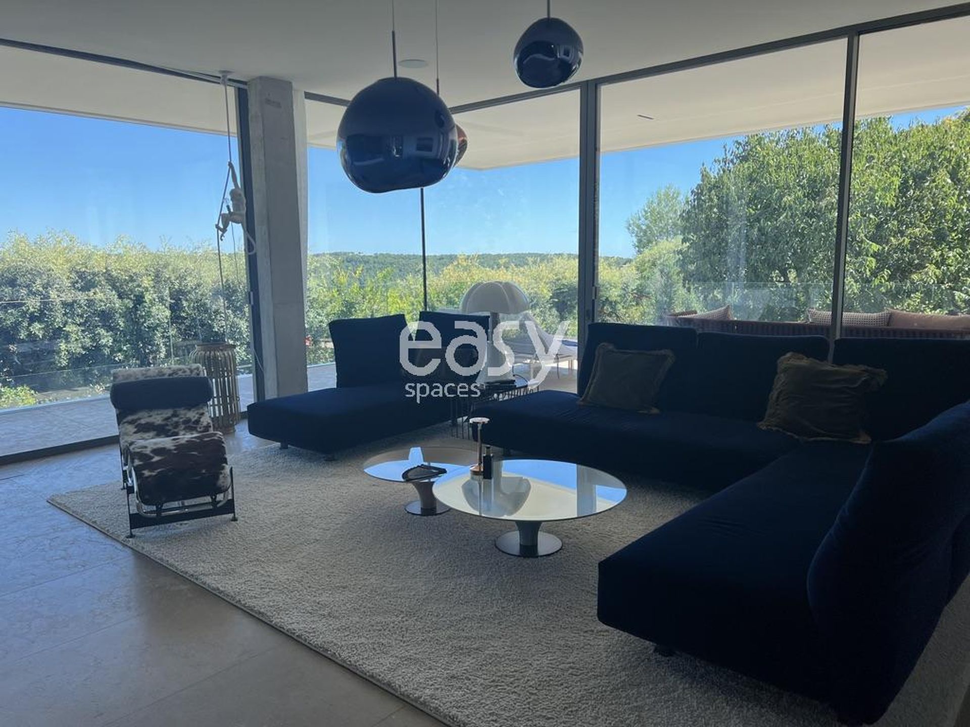 Cette superbe villa contemporaine en location pour shooting et tournage près de Montpellier possède un grand espace séjour entierement ouvert sur la piscine et les exterieurs, et d'un cadre incroyable.