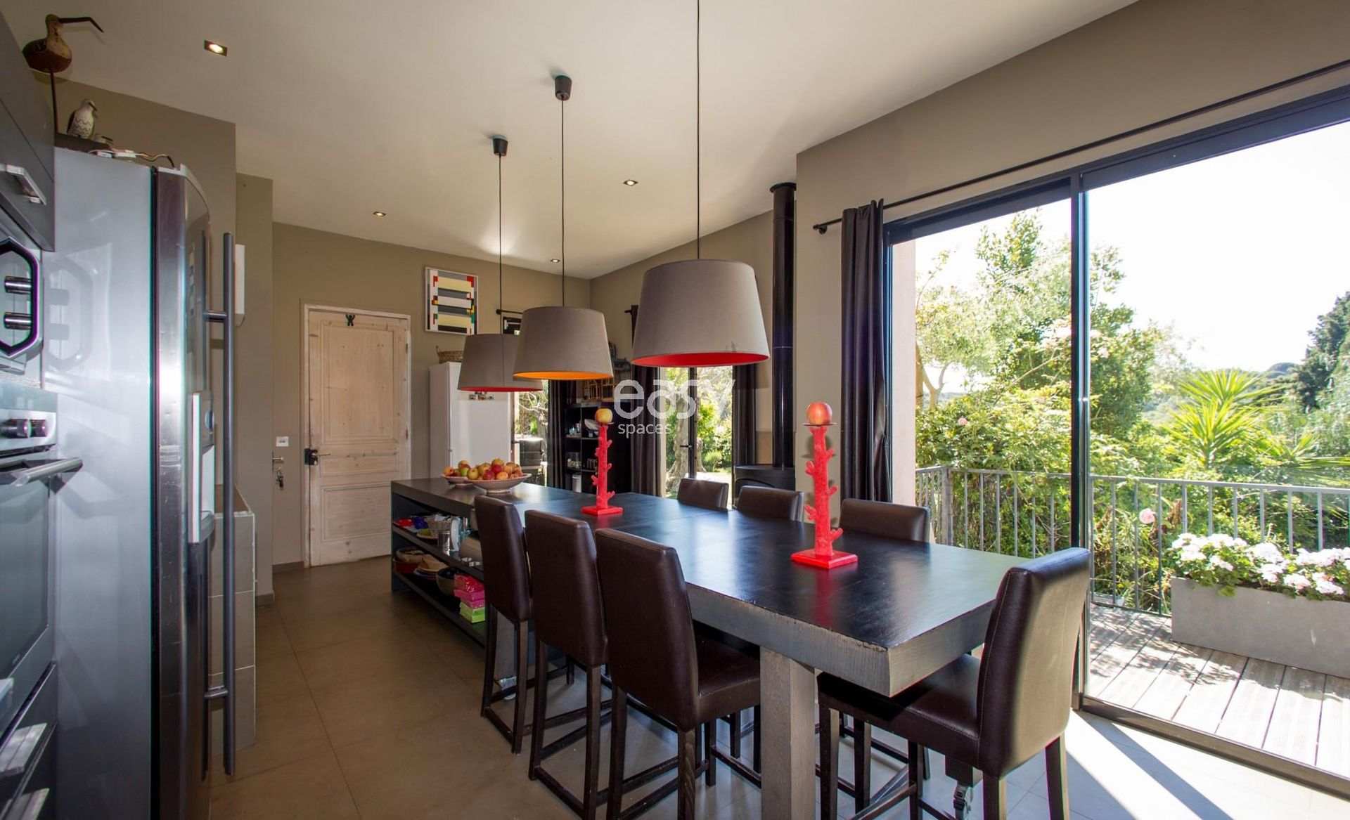 Cuisine design et salle à manger lumineuse, parfaites pour les mises en scène lifestyle