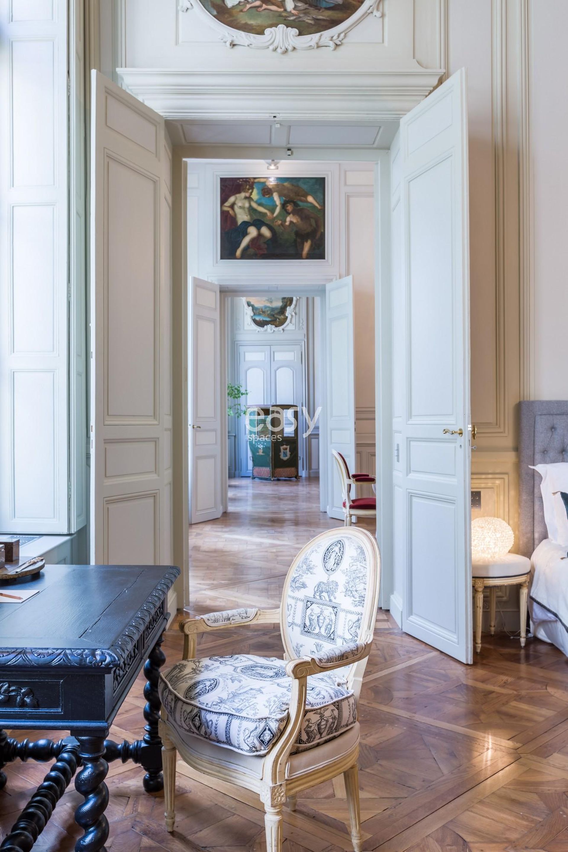 Bel appartement avec parquet moulures à louer pour un shooting photo, tournage de film, ou un événement professionnel dans le centre de Bordeaux. Cet espace atypique et original offre une belle hauteur sous plafond, des volumes généreux et une luminosité idéale, convenant parfaitement pour une production photo, tournage de court métrage, ou pour des événements d'entreprise tel qu'une présentation de produit ou un séminaire. Il offre aussi une vue charmante sur la cour extérieure et ses jardins à la Française.