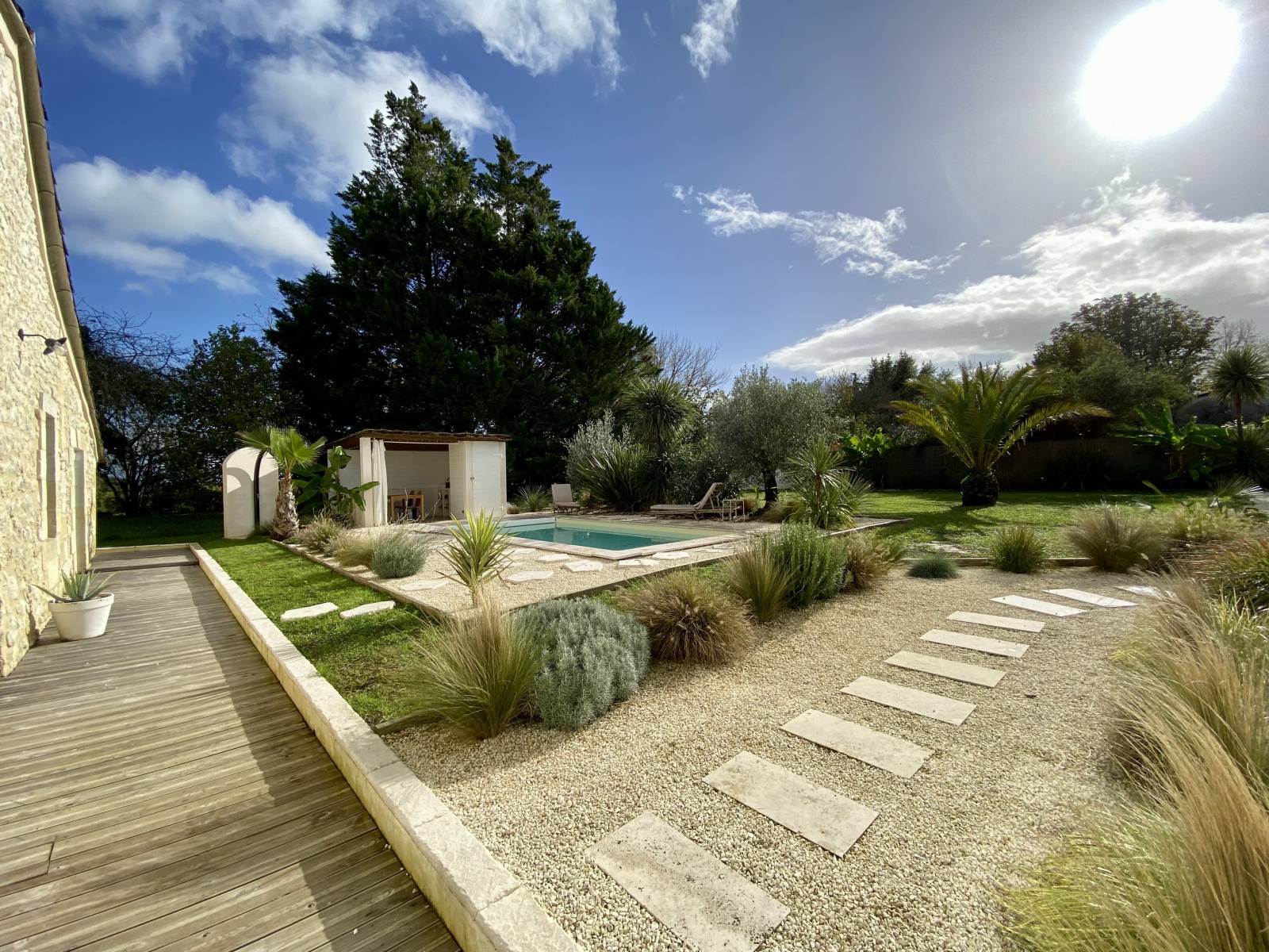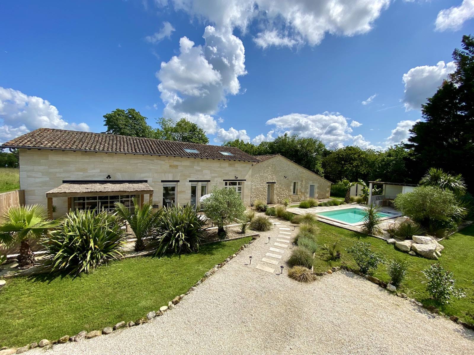 Découvrez la villa MIMY, une jolie maison en pierres de 200m², située à 28km de Bordeaux.
