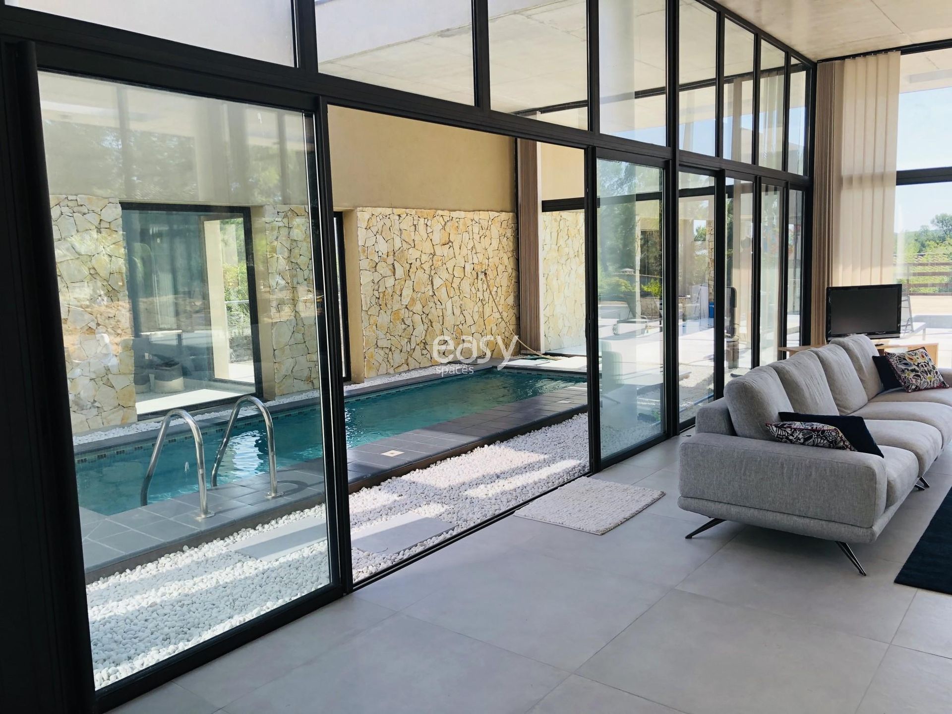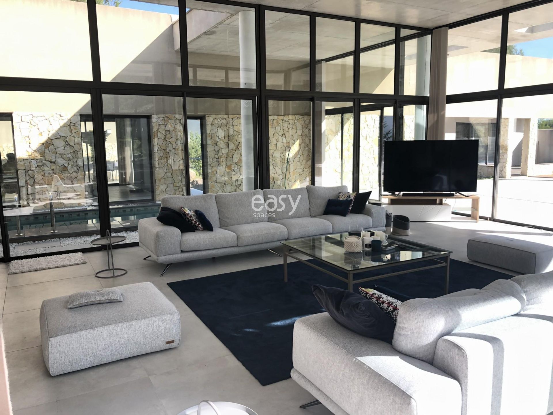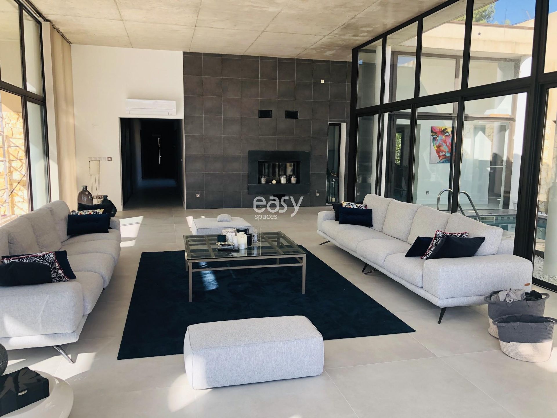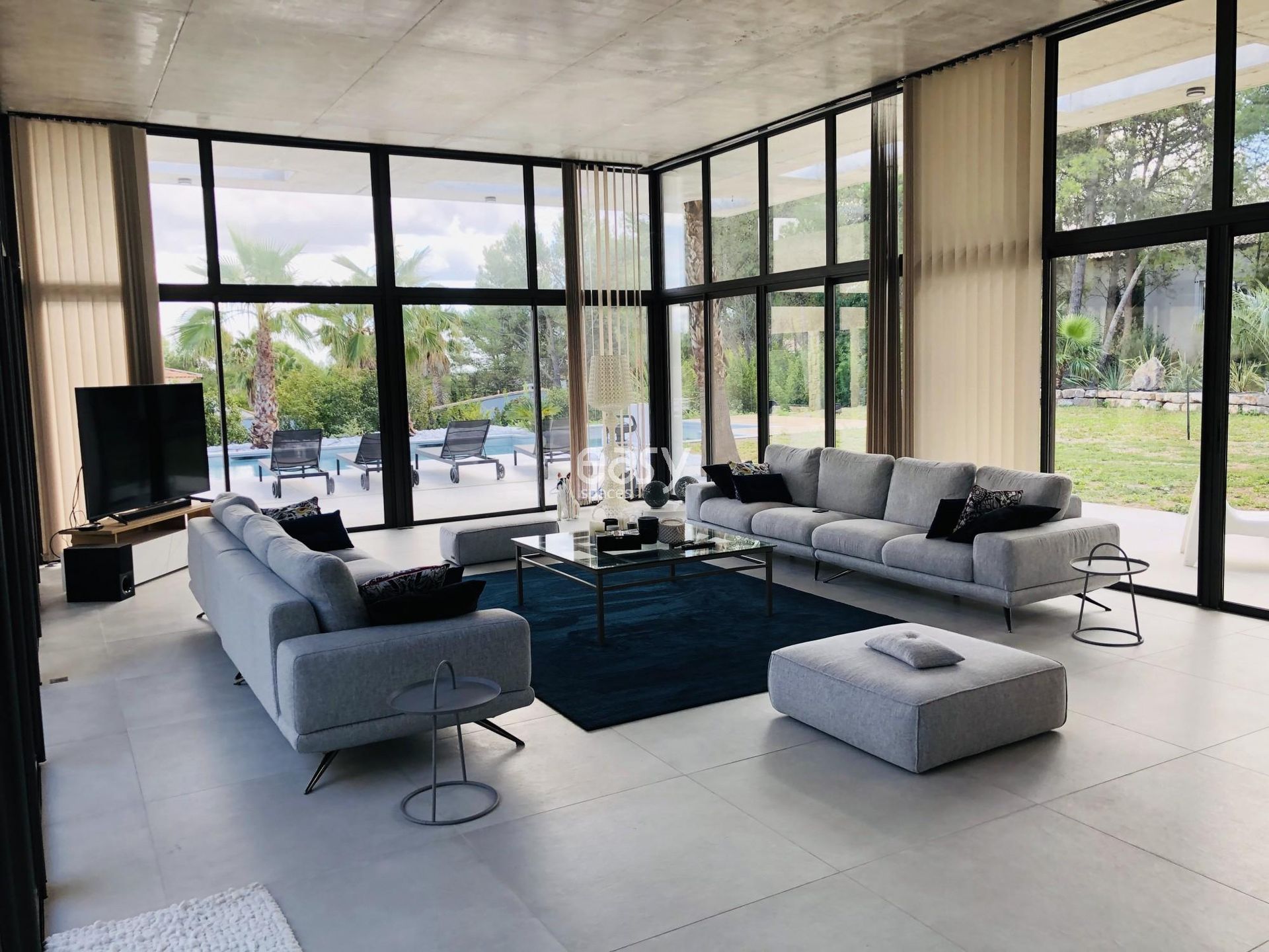 Bénéficiant d'une architecture atypique, d'un bel espace séjour lumineux de 70m2 avec décoration épurée et d'un bel espace exterieur, ce décor incroyable sera idéal pour un shooting de mobilier de jardin par exemple.