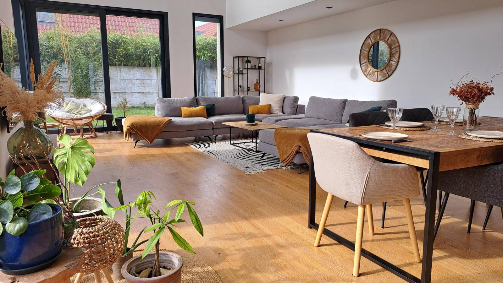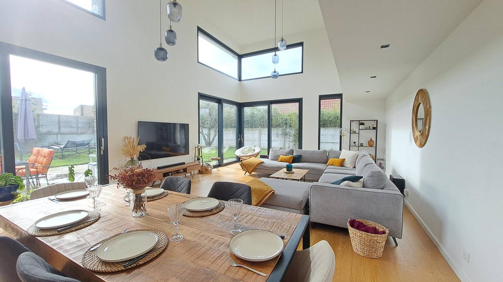 Située dans un quartier calme et facilement accessible, cette maison séduit dès les premières secondes par son architecture épurée et ses volumes généreux. Sa décoration scandinave moderne offre une atmosphère douce, accueillante et résolument dans l’air du temps.