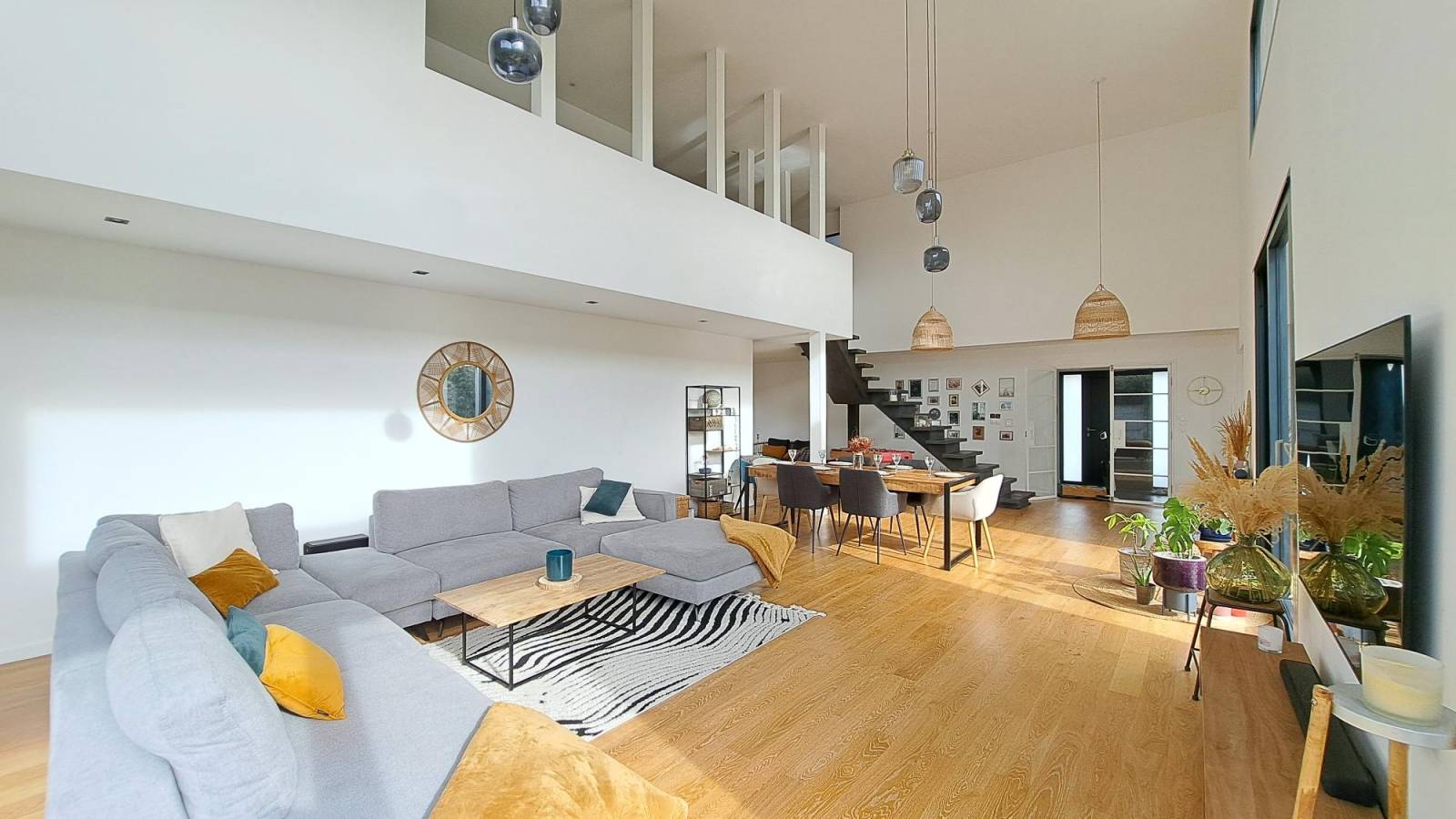 Séjour spacieux et lumineux avec grande hauteur sous plafond
