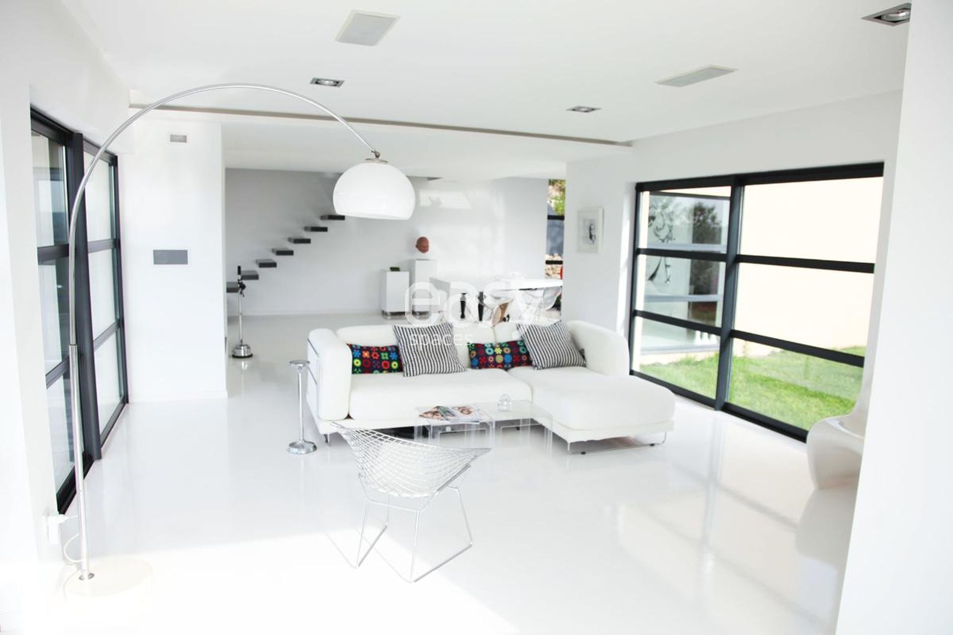 Typologie : villa contemporaine, plan traversant, grandes ouvertures.
