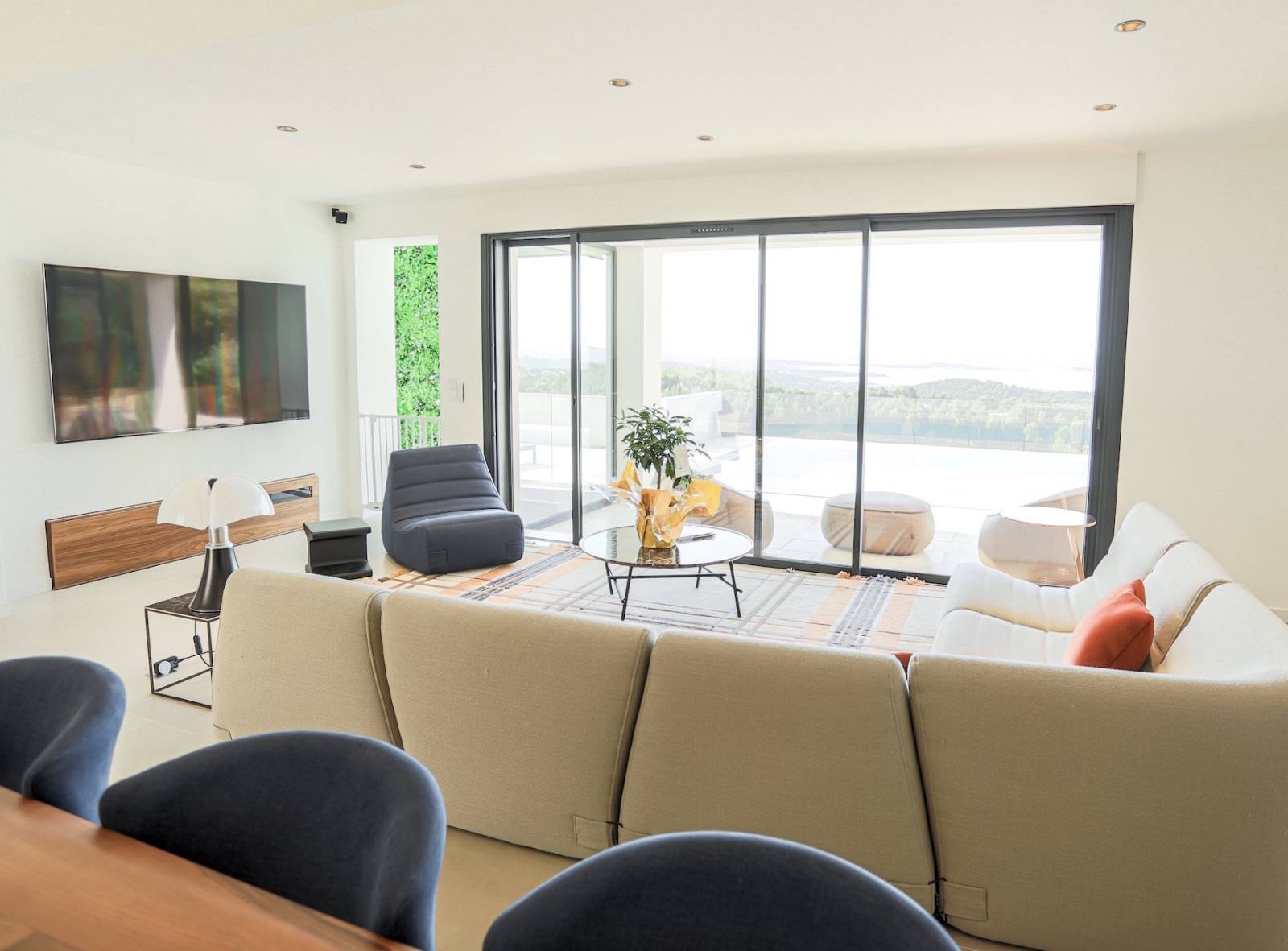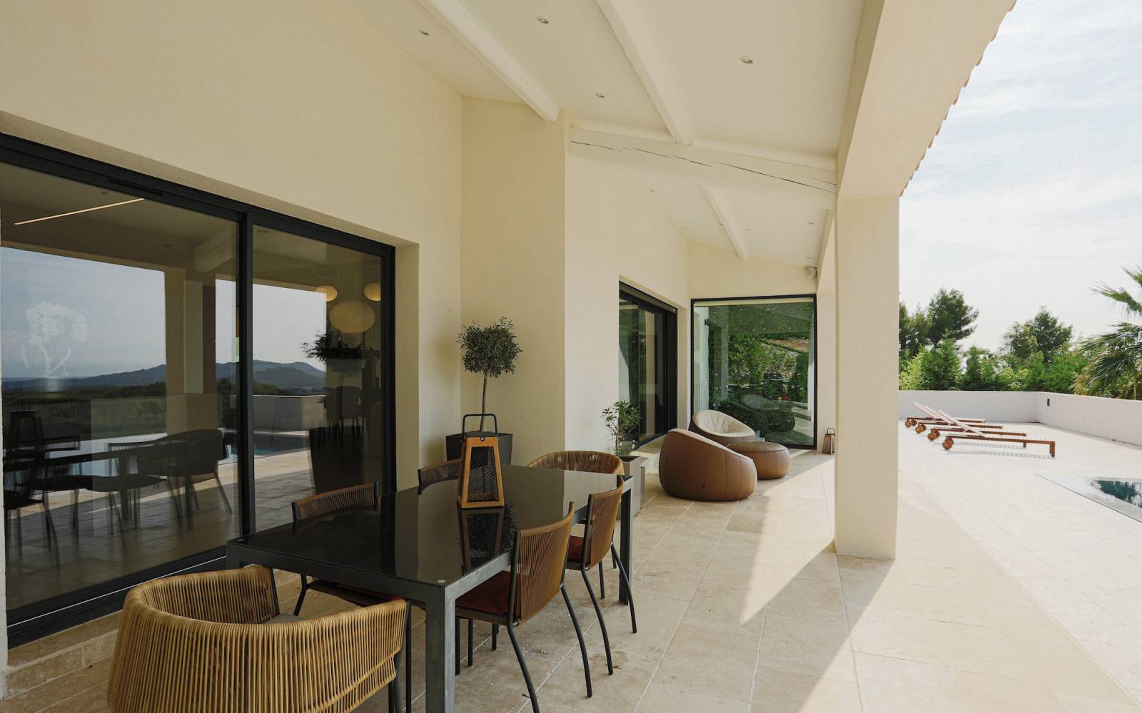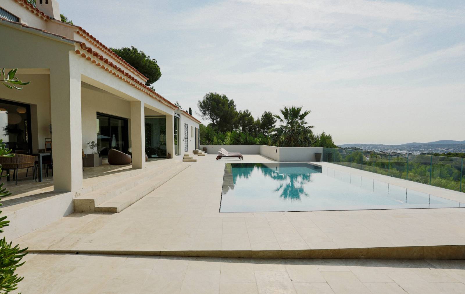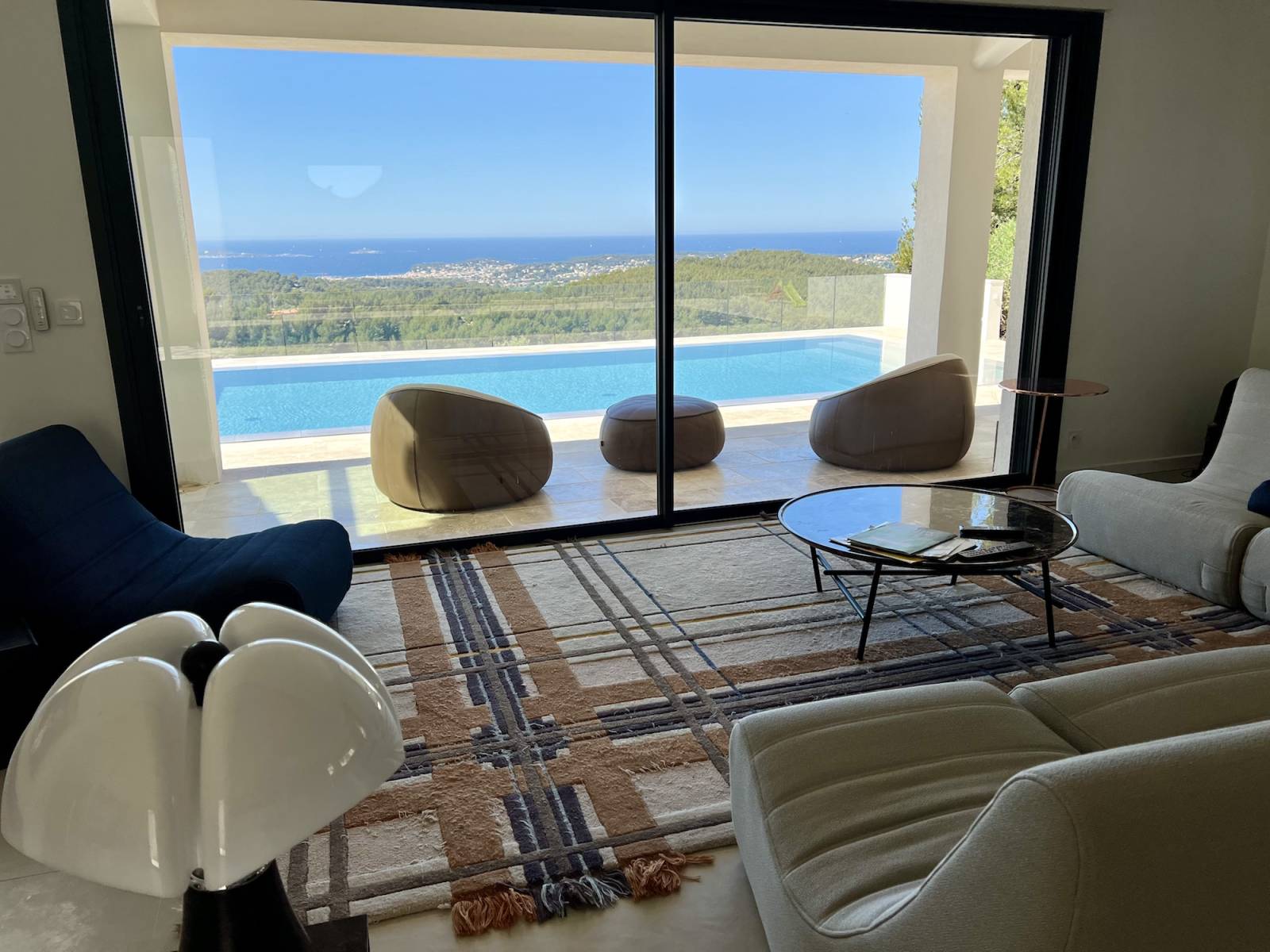 Nichée sur les hauteurs et surplombant la baie son panorama est à couper le souffle, créant une ambiance parfaite pour un shooting de mobilier outdoor par exemple.