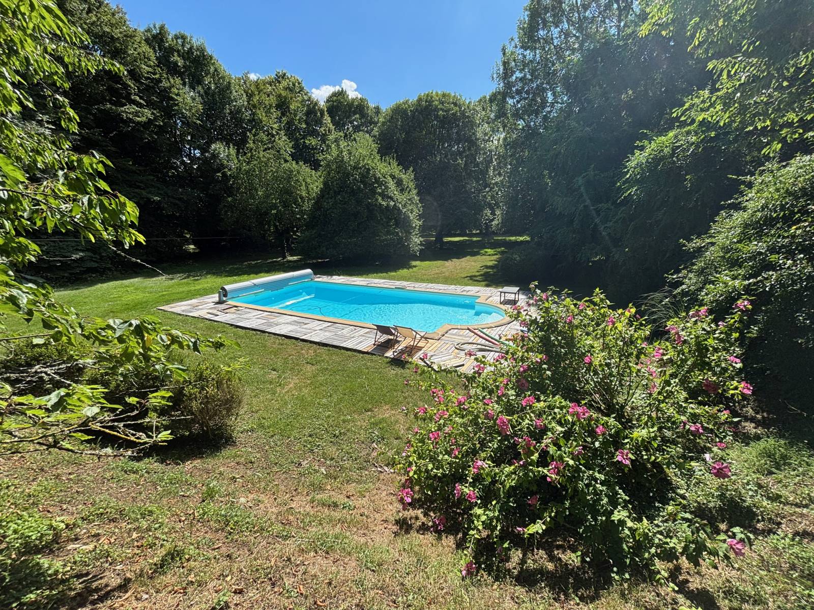 Dès l’entrée sur la propriété, son grand parc boisé s’étend à perte de vue, ponctué de clairières, d’arbres centenaires et de sentiers secrets.
