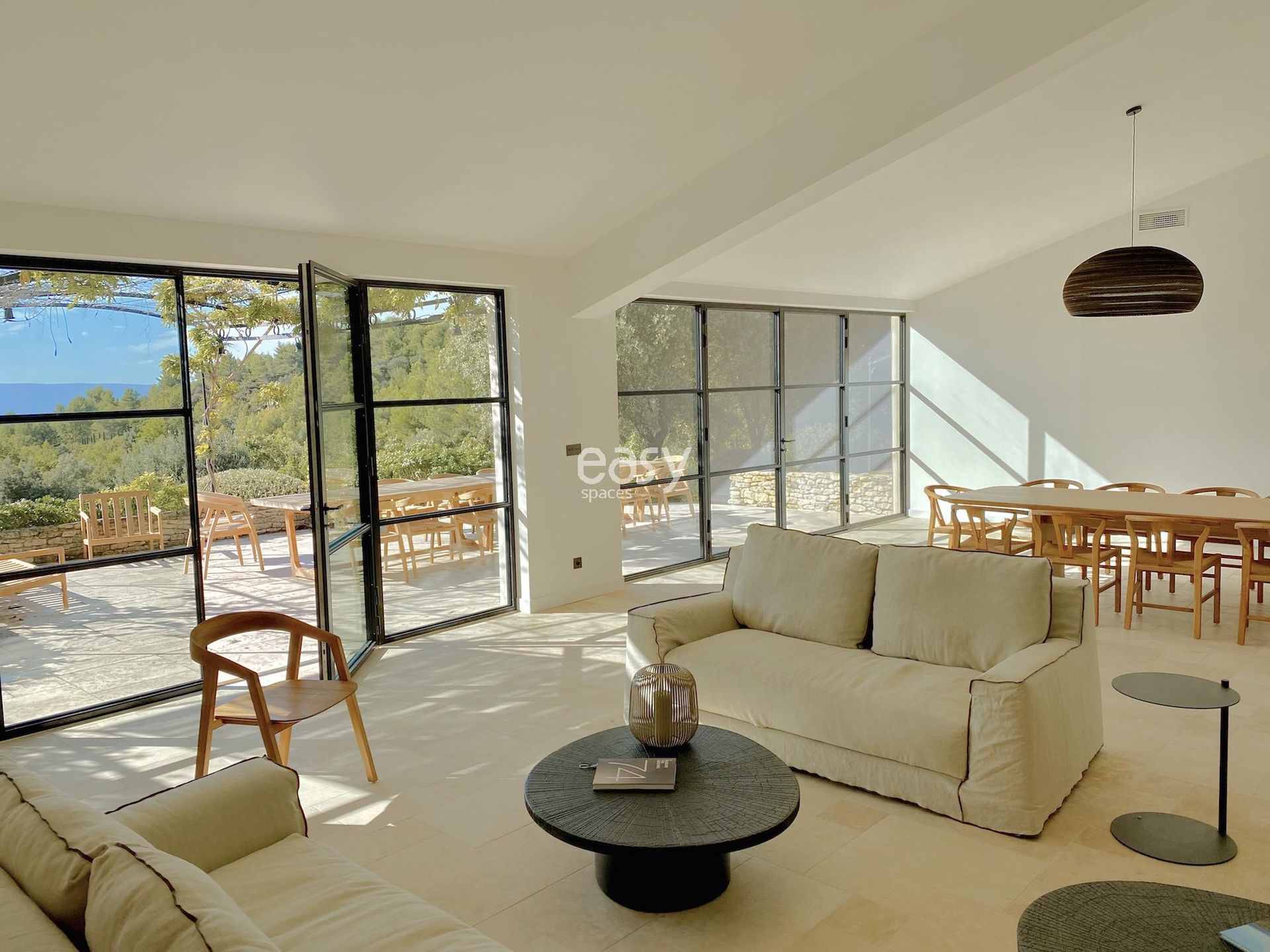 Situé dans le Vaucluse près d'Avignon, ce domaine possède un séjour baigné de lumière grâce à de grandes fenêtres, une ambiance chaleureuse et authentique et de beaux volumes. De plus, ses espaces exterieurs avec piscine chauffée et jardin avec oliviers et essences méditérranéennes seront des décors parfaits pour un shooting de mobilier exterieur.