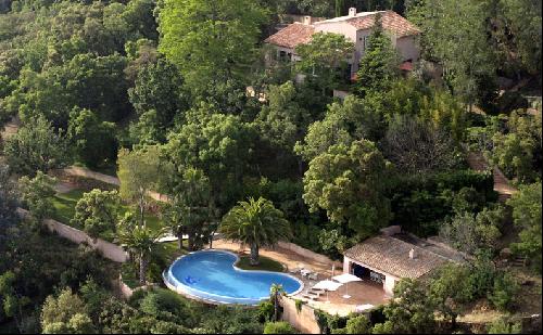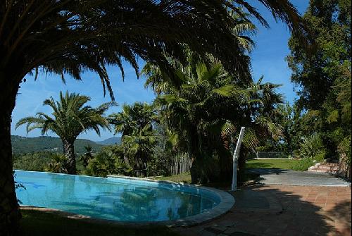 Cette somptueuse villa avec piscine à débordement se situe près de Saint Tropez, dans le Sud de la France. À l'étage, on trouve aussi une petite terrasse. Son jardin implanté de quelques palmiers donne une impression d'île paradisiaque et font de la villa CAR et de sa piscine un superbe endroit pour des productions photographiques ou des tournages de films dans la région Provence Alpes Côte d'Azur.