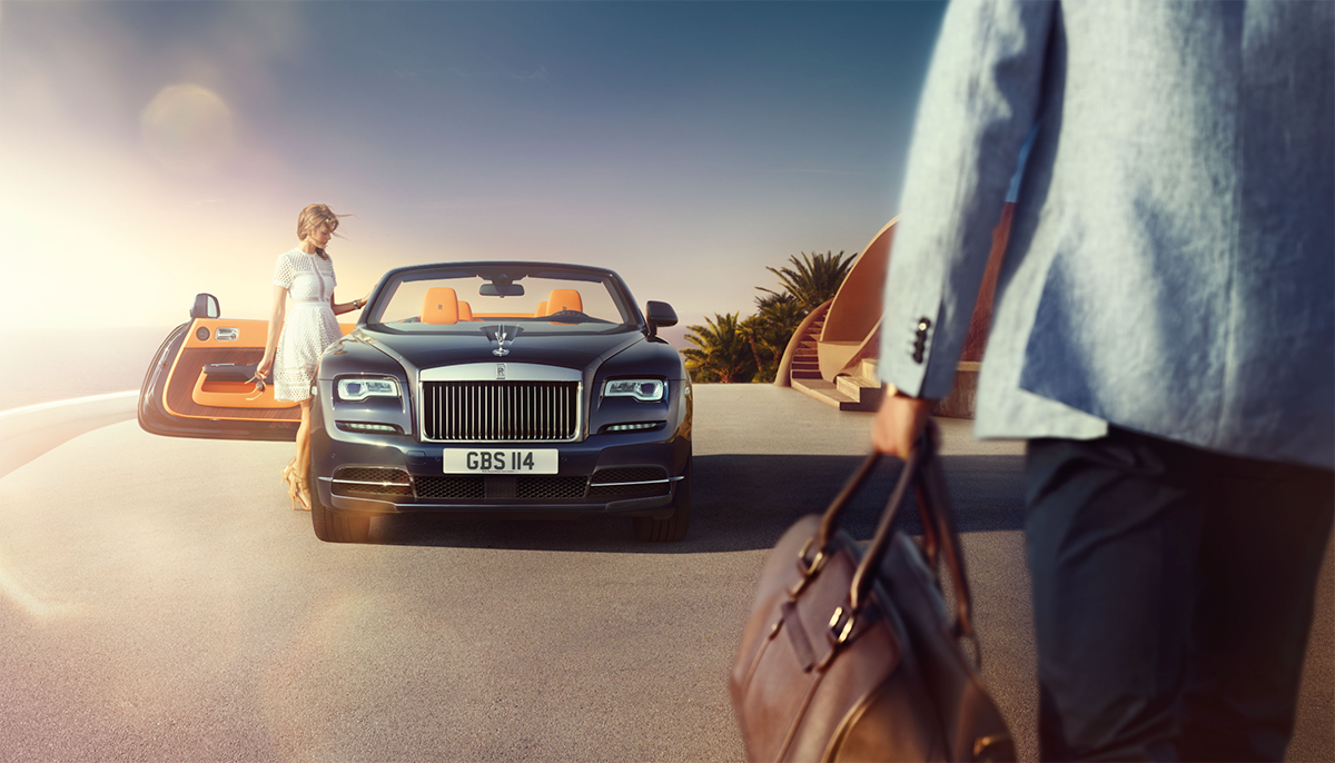 CAMCAN s’appuie sur une architecture “sculpture” à l’esprit troglodyte, typée avant-gardiste années 1970, avec une écriture organique et futuriste. Sur la photo, les courbes dominent : escaliers arrondis, volumes creusés, garde-corps fluides et finitions minérales. La scène principale offre un avant-plan net pour la voiture, tandis que la mer, au loin, crée un fond stable et immédiatement “Côte d’Azur”. C’est exactement ce type de cohérence décor + usage plateau dont la marque Rolls-Royce avait besoin sur la Côte d 'Azur.