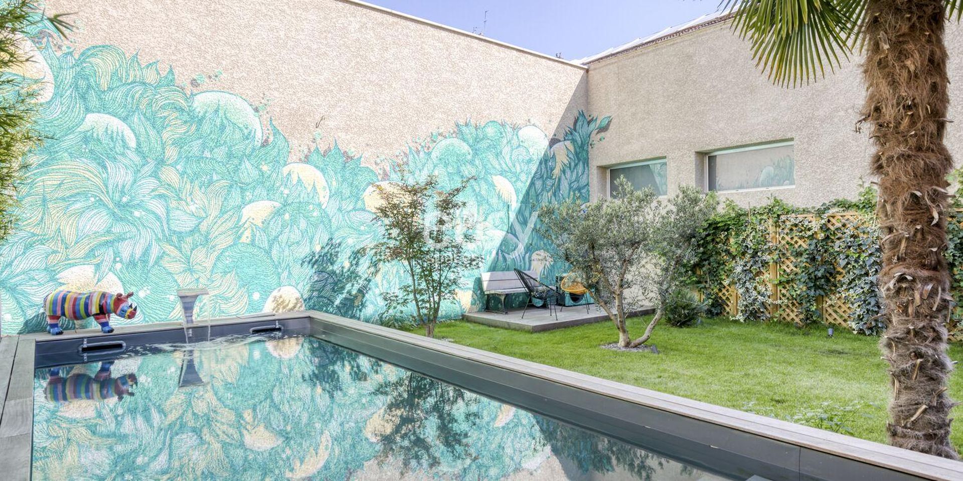 Cette très jolie villa de 250m2 sur 4 niveaux offre un espace séjour moderne et lumineux de 80m2 avec cuisine ouverte, un jardin exotique, une terrasse et une piscine chauffée colorée avec fresque murale de street art. Les atouts comme le caveau de dégustation, le wifi, l'accès facile et la proximité du parking et de la gare en font un espace polyvalent.