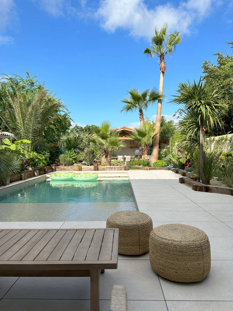 À l'extérieur son joli jardin plat exotique et verdoyant avec son pool house de 25m2 dans le fond offre de nombreuses ambiances très inspirantes pour un shooting déco ou pour un shooting de mobilier de jardin par exemple.