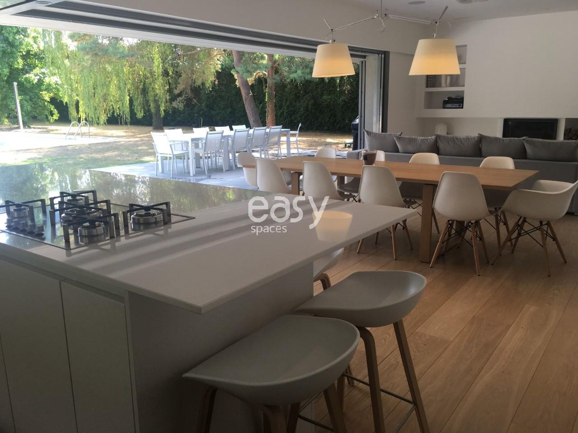 Easy Spaces, votre partenaire de choix, vous propose une magnifique villa moderne avec piscine pour assurer le succès de vos shootings, tournages et événements professionnels près de Paris. Cet espace atypique offre un environnement idéal pour vos projets artistiques avec son séjour lumineux de 80m2 et son jardin plat, équipé d'une grande piscine et d'une terrasse pour des prises de vue exceptionnelles en intérieur ou extérieur.
