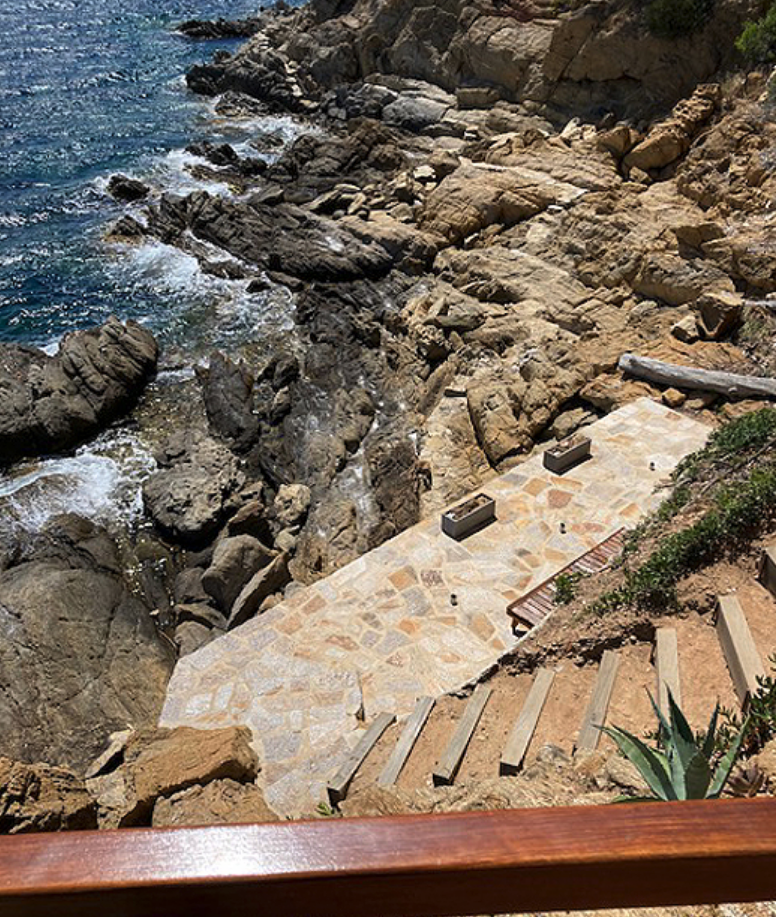 Ce lieu d’exception séduit immédiatement par sa situation privilégiée : une plage accessible à quelques pas, une vue mer panoramique et un extérieur spectaculaire perché à flanc de mer.