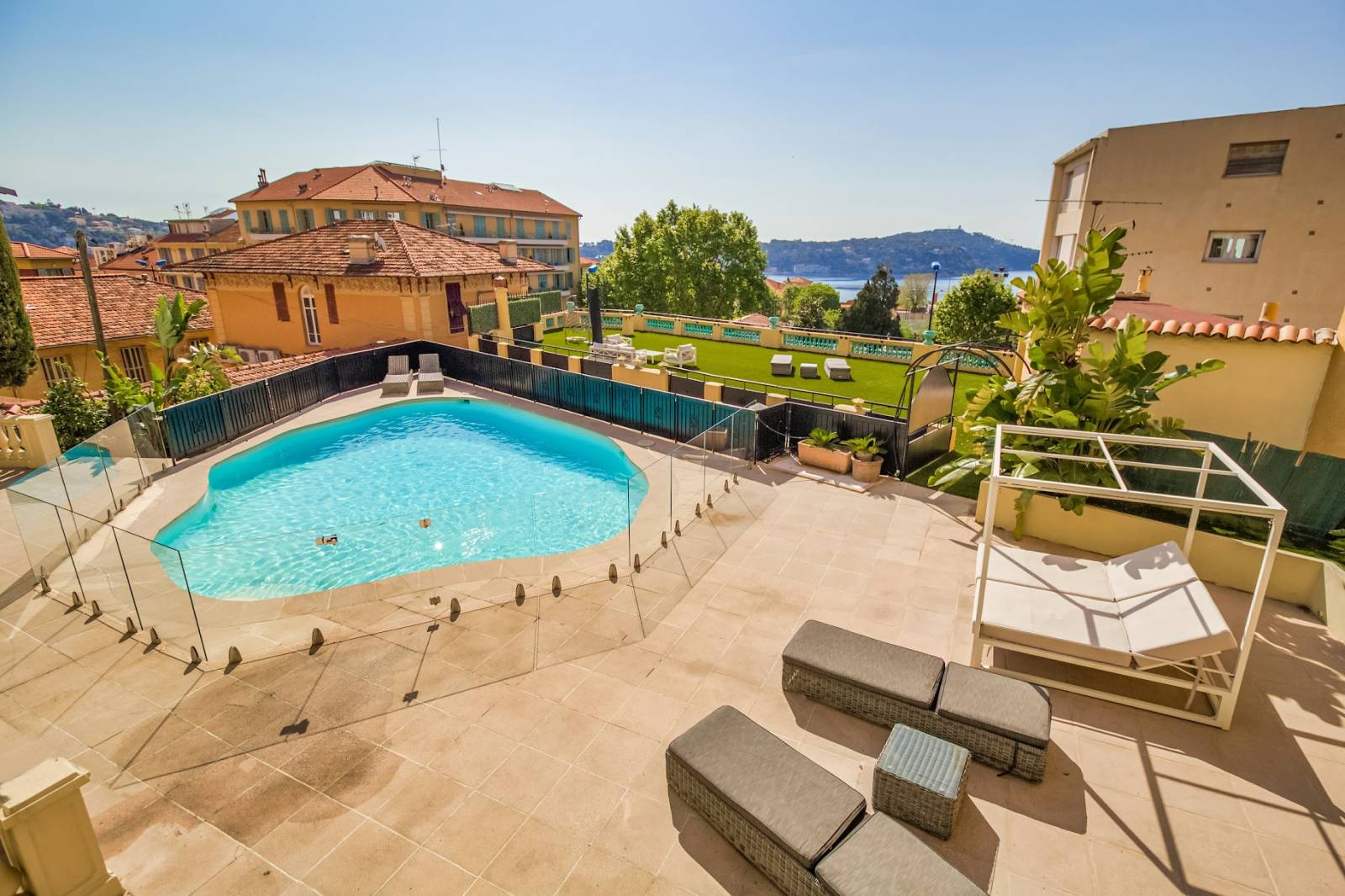 Cette superbe villa belle epoque vue mer bénéficie d'une situation exceptionnelle au coeur de la ville; ses superbes espaces intérieurs avec parquet et moulûres, sa décoration mi-moderne / mi-belle époque et sa vue incroyable en font un lieu d'exception pour shooting et tournage sur la Côte d'Azur. De plus ses exterieurs, sa piscine et sa grande terrasse panoramique seront des décors parfaits pour un shooting de mobilier de jardin par exemple.