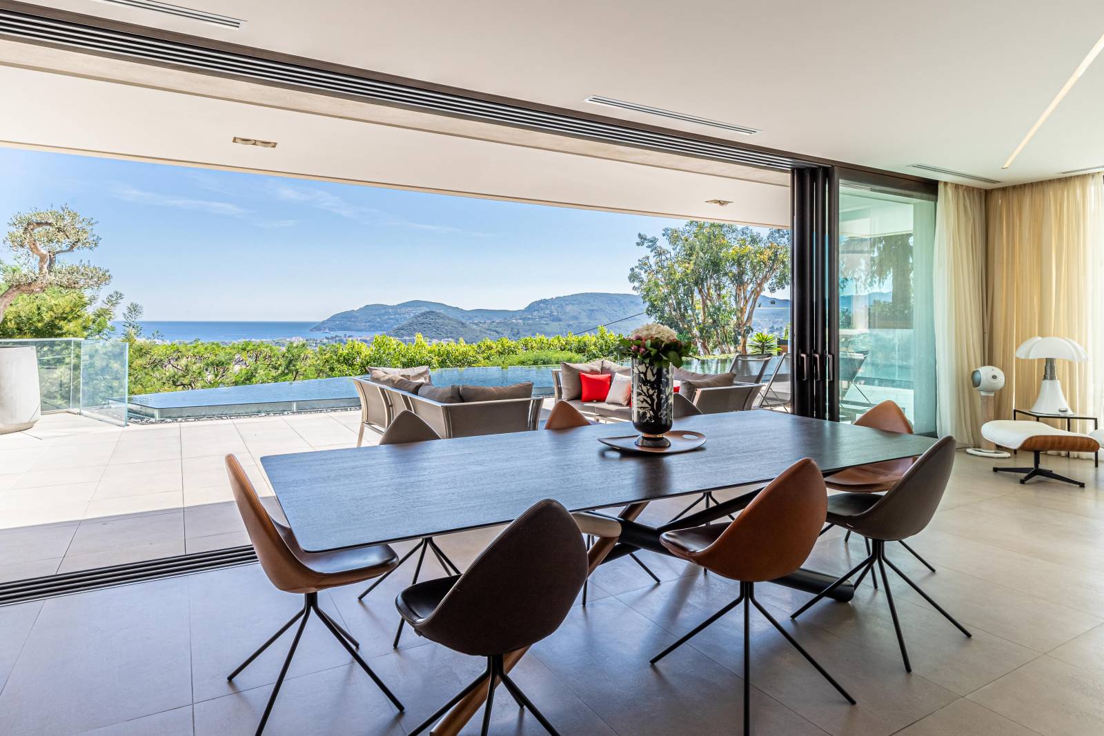 Cette villa ultra contemporaine avec vue mer panoramique, au cœur de la Côte d’Azur