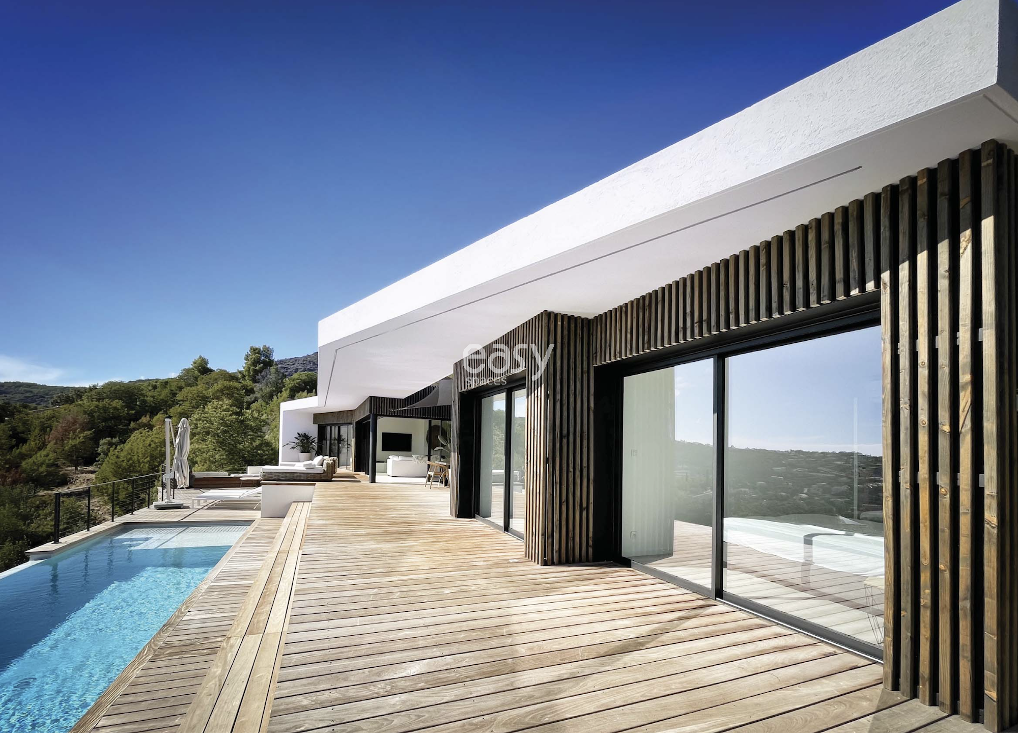 Cette superbe villa contemporaine vue mer est en location comme lieu de shooting ou comme lieu de tournage près de Saint-Tropez.