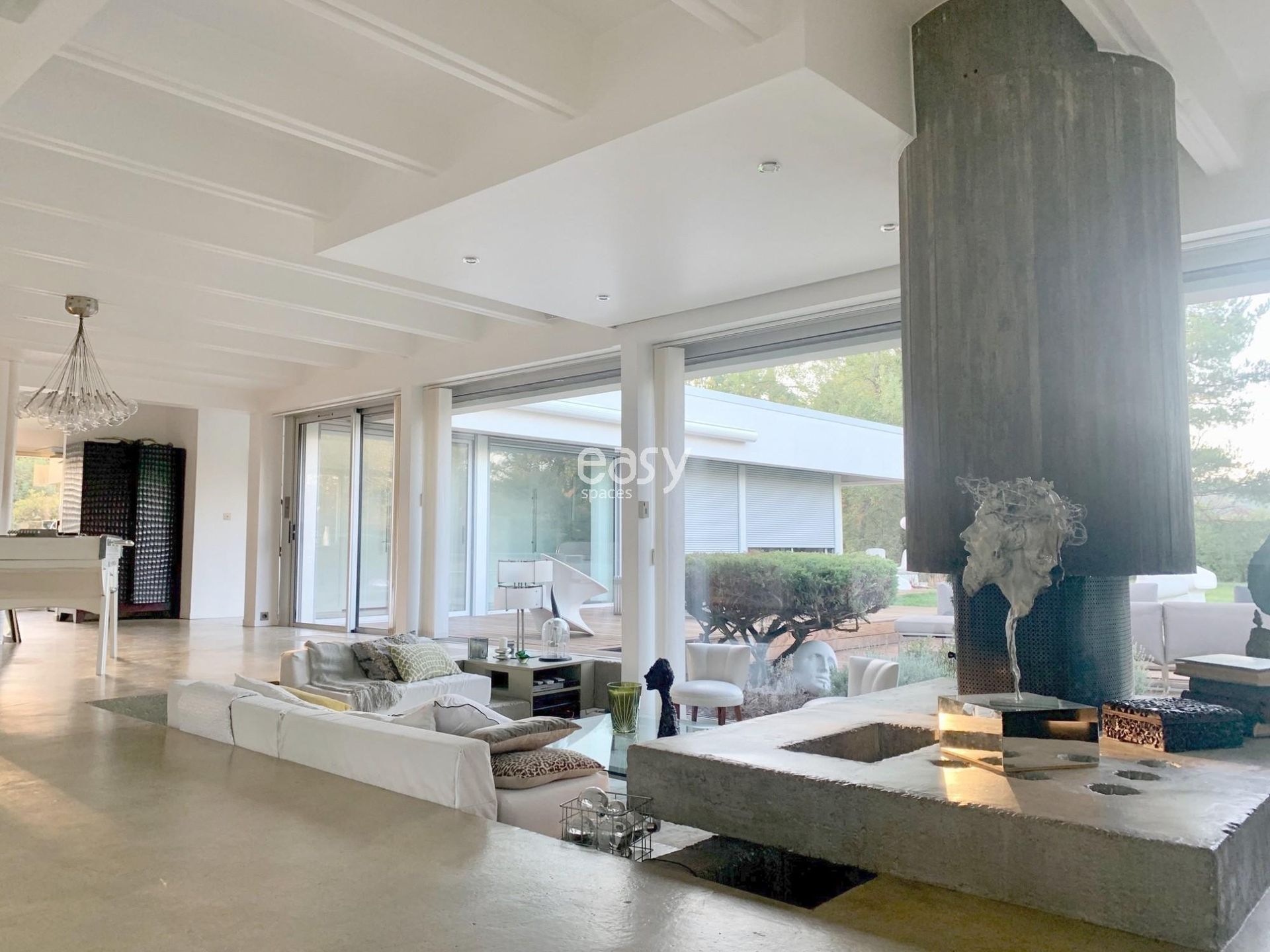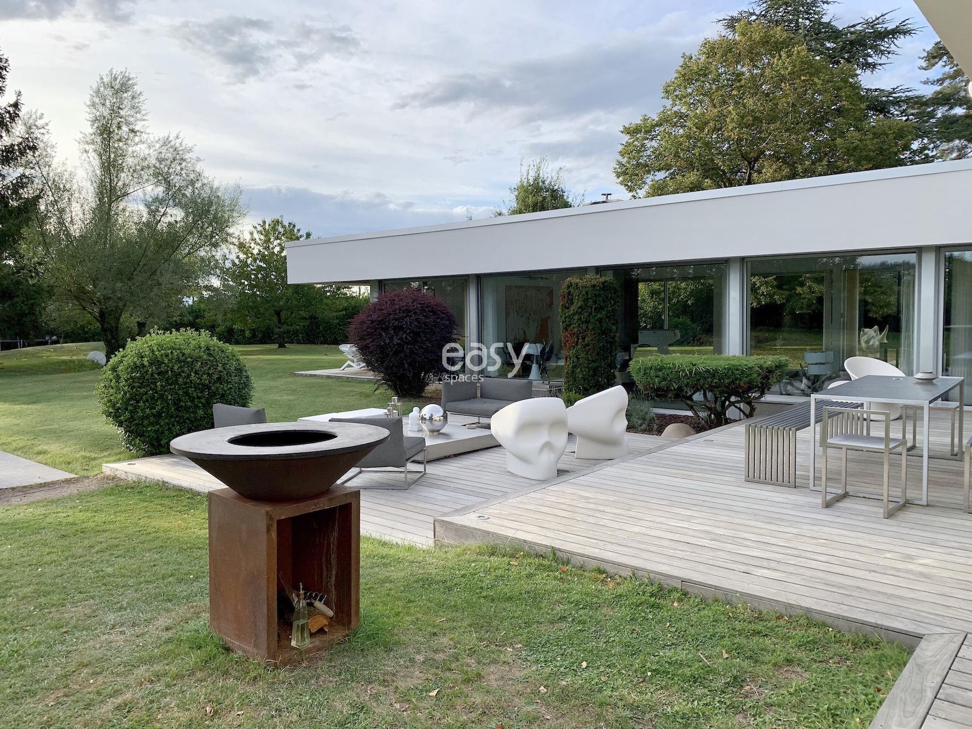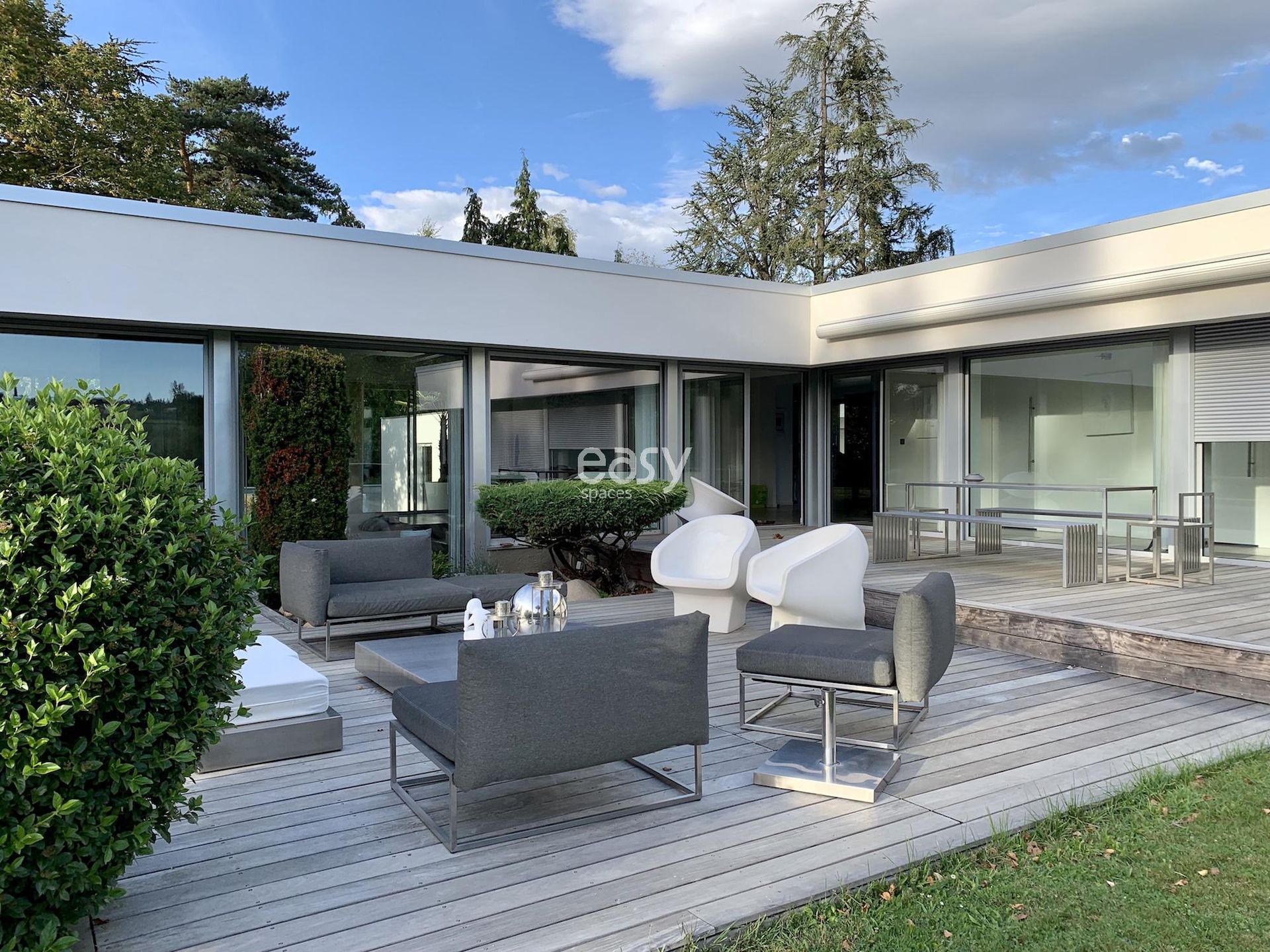Cette villa contemporaine bénéficie d'un espace séjour très spacieux de 140m2 à la décoration moderne et épurée, d'un grand jardin boisé et plat et d'une belle terrasse de 100m2; Ses beaux espaces exterieurs en font un lieu idéal pour un shooting de mobilier de jardin.