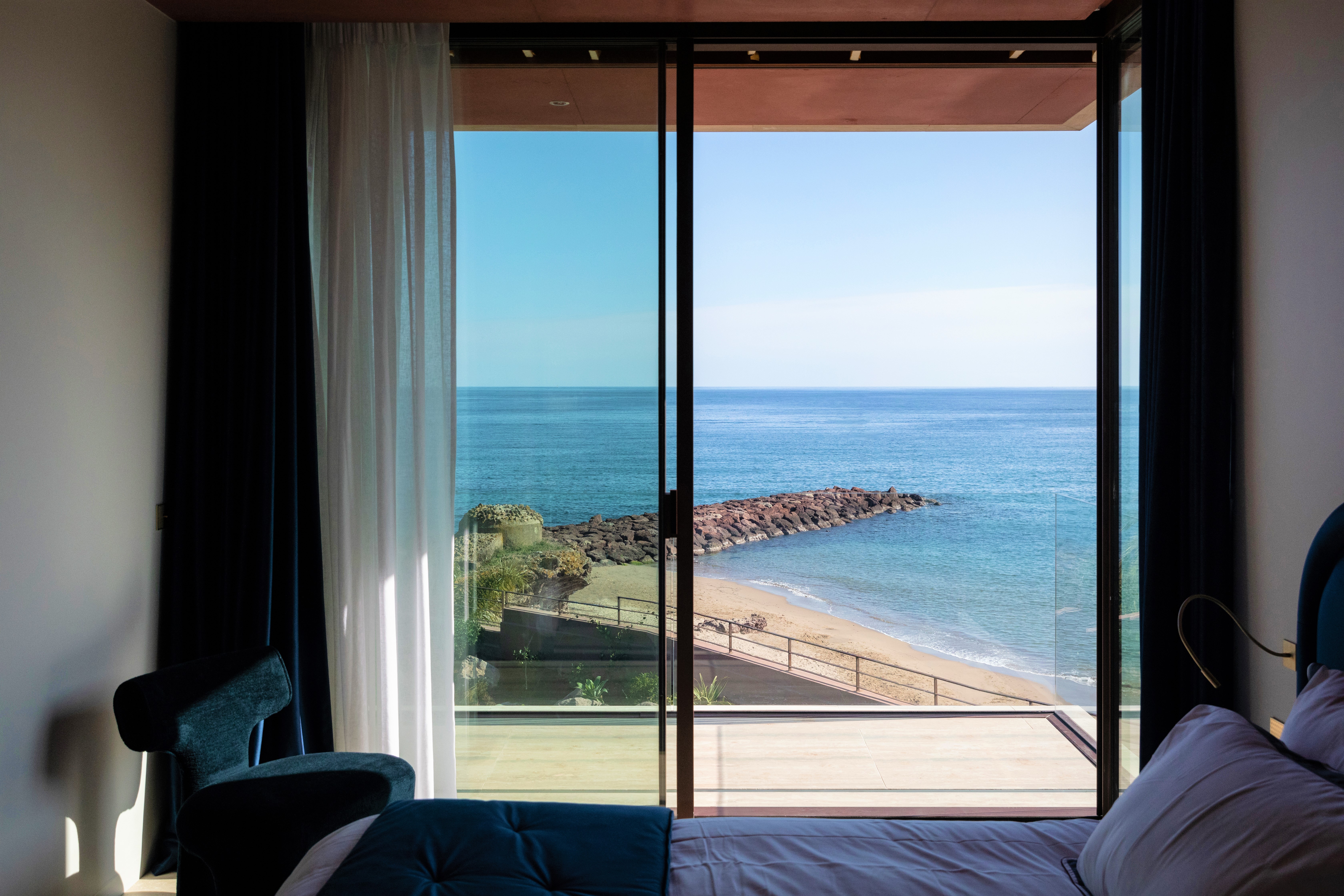 Dès l'entrée, la villa vous plonge dans une ambiance incroyable, les grandes baies vitrées offrent une luminosité naturelle exceptionnelle et permettent d’admirer la mer depuis chaque pièce, notamment dans chacune des chambres.