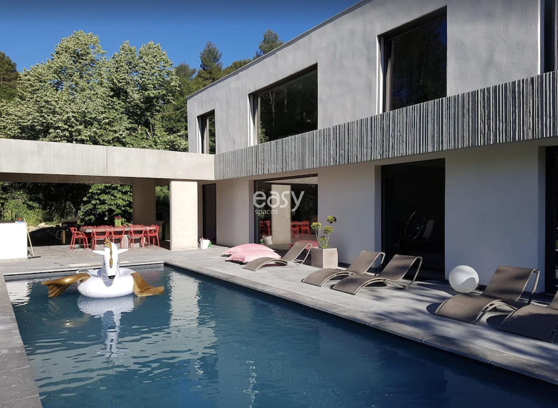 Cette villa contemporaine est en location pour prises de vues photos et tournage de long ou court métrage à Aix-en-Provence.