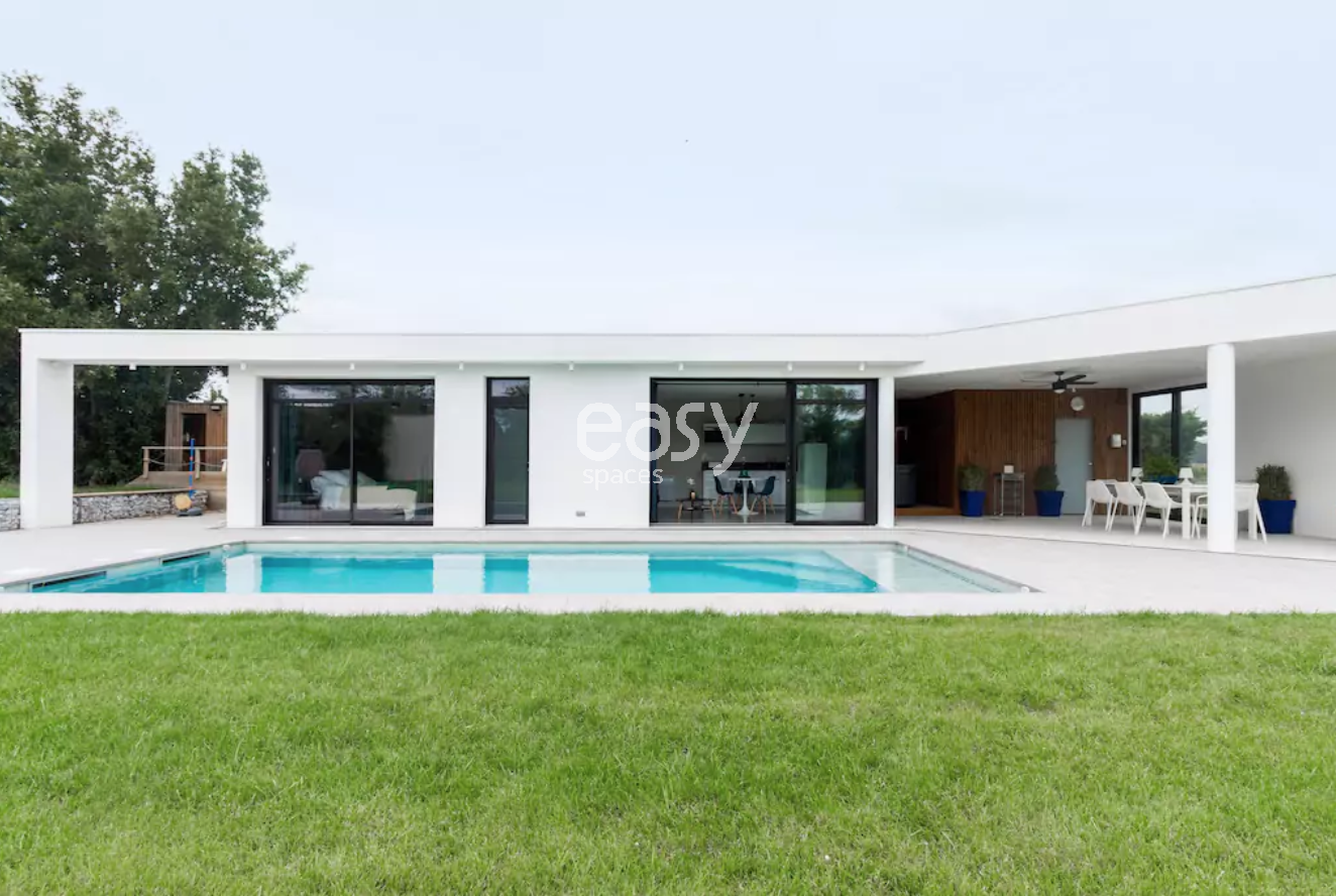 Cette belle villa contemporaine pour shooting possède un grand espace de 50m2 comprenant un séjour avec vue dégagée sur les extérieurs et la piscine, une cuisine ouverte, une chambre et une salle de bain. L'extérieur sera idéal pour des photos de mobilier de jardin par exemple avec sa belle terrasse couverte de 50m2 et sa piscine vue sur les vignes.
