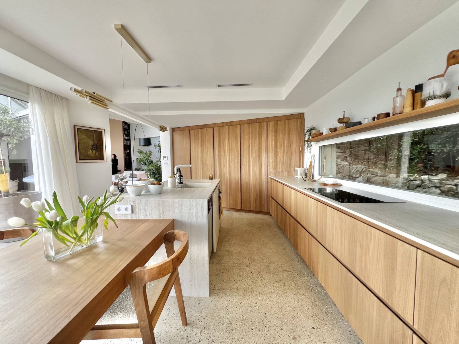 De plus, la maison dispose d'un jardin plat soigneusement aménagé et d'une piscine à débordement avec une vue panoramique sur la mer et la ville.