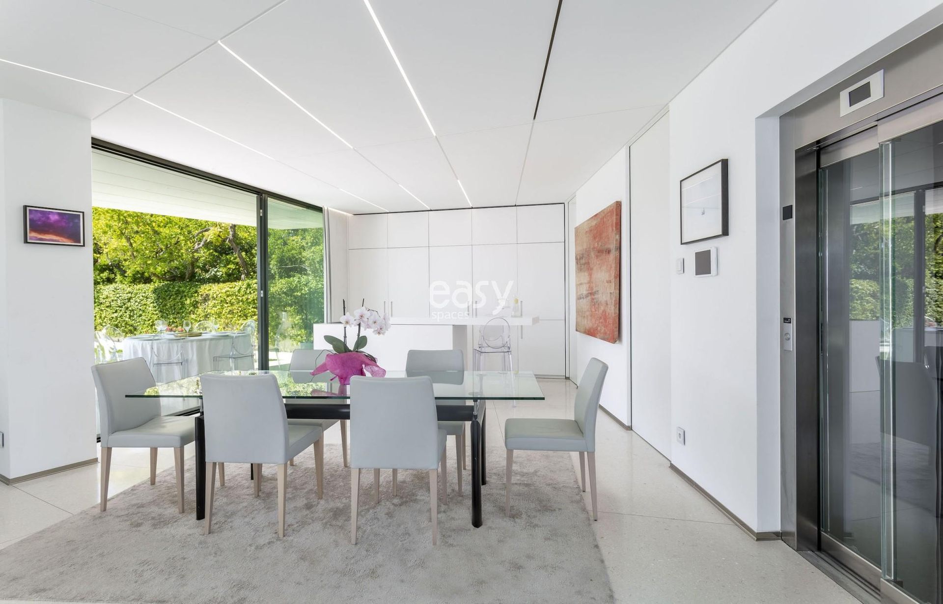 Bénéficiant d'un cadre d'exception comme "suspendue dans les airs" son espace séjour spacieux vue mer à la décoration moderne, raffinée et épurée et sa superbe piscine vue panoramique sur la Turbie font de cette villa contemporaine vue mer le décor idéal pour tout types de productions photos ou pour un tournage de film à Monaco.
