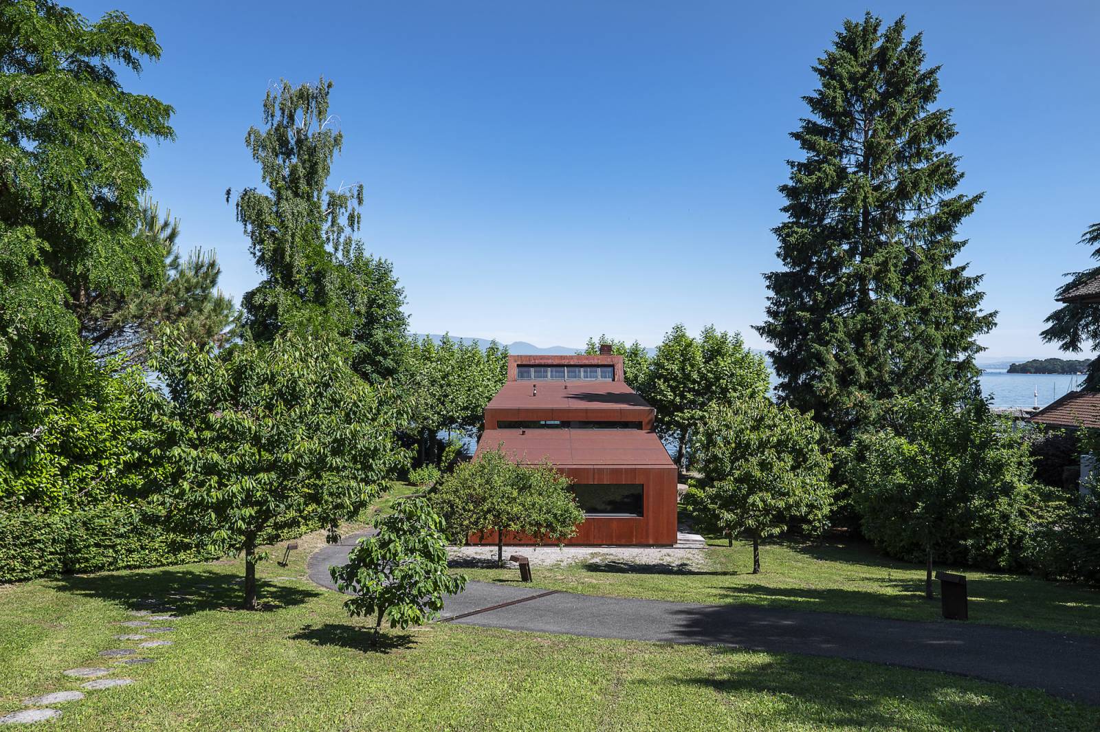 Située aux portes de Genève, cette villa d’architecte à louer pour shooting, tournage et événementiel au design affirmé est nichée dans un véritable écrin de verdure avec vue plongeante sur lac, accessible directement depuis le jardin.