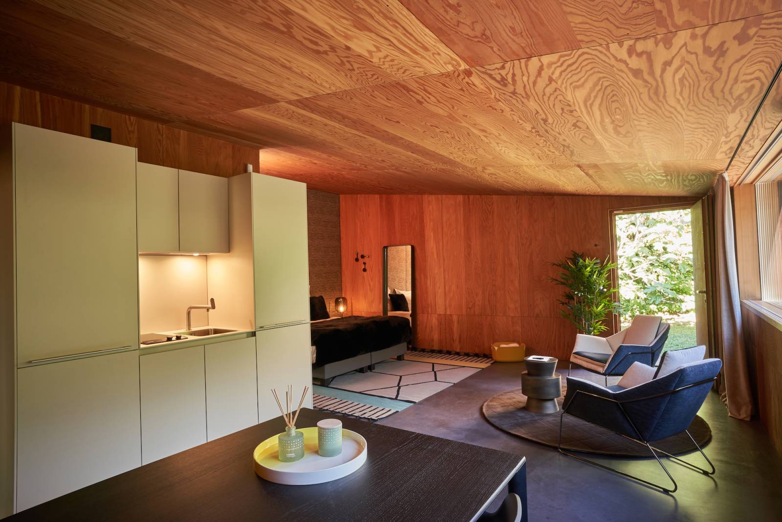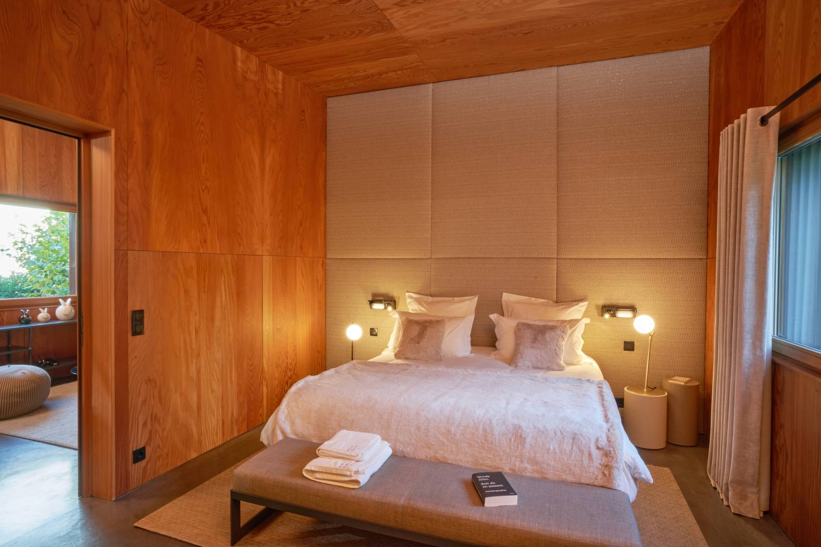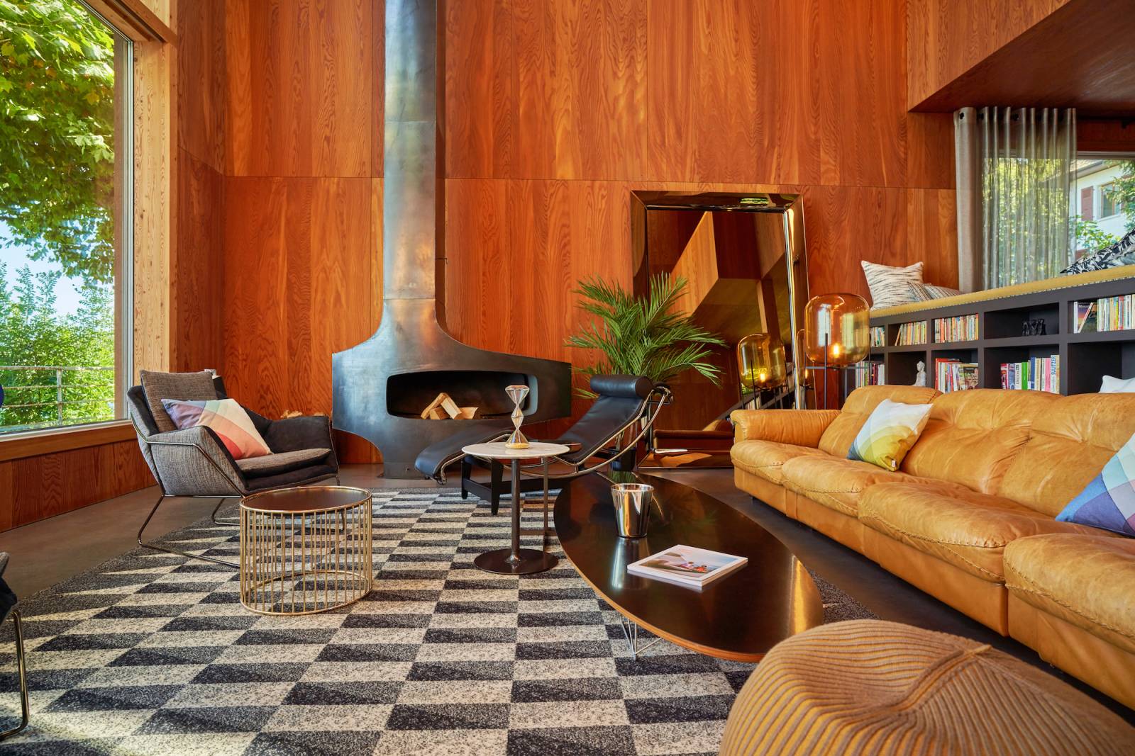 L’atmosphère est incroyable : une maison qui joue les contrastes, entre lignes contemporaines, matériaux bruts et déco vintage chic ultra travaillée. Les murs en bois apportent chaleur et structure, et la lumière naturelle inonde le séjour, créant une sensation d’intérieur-extérieur en toute saison.