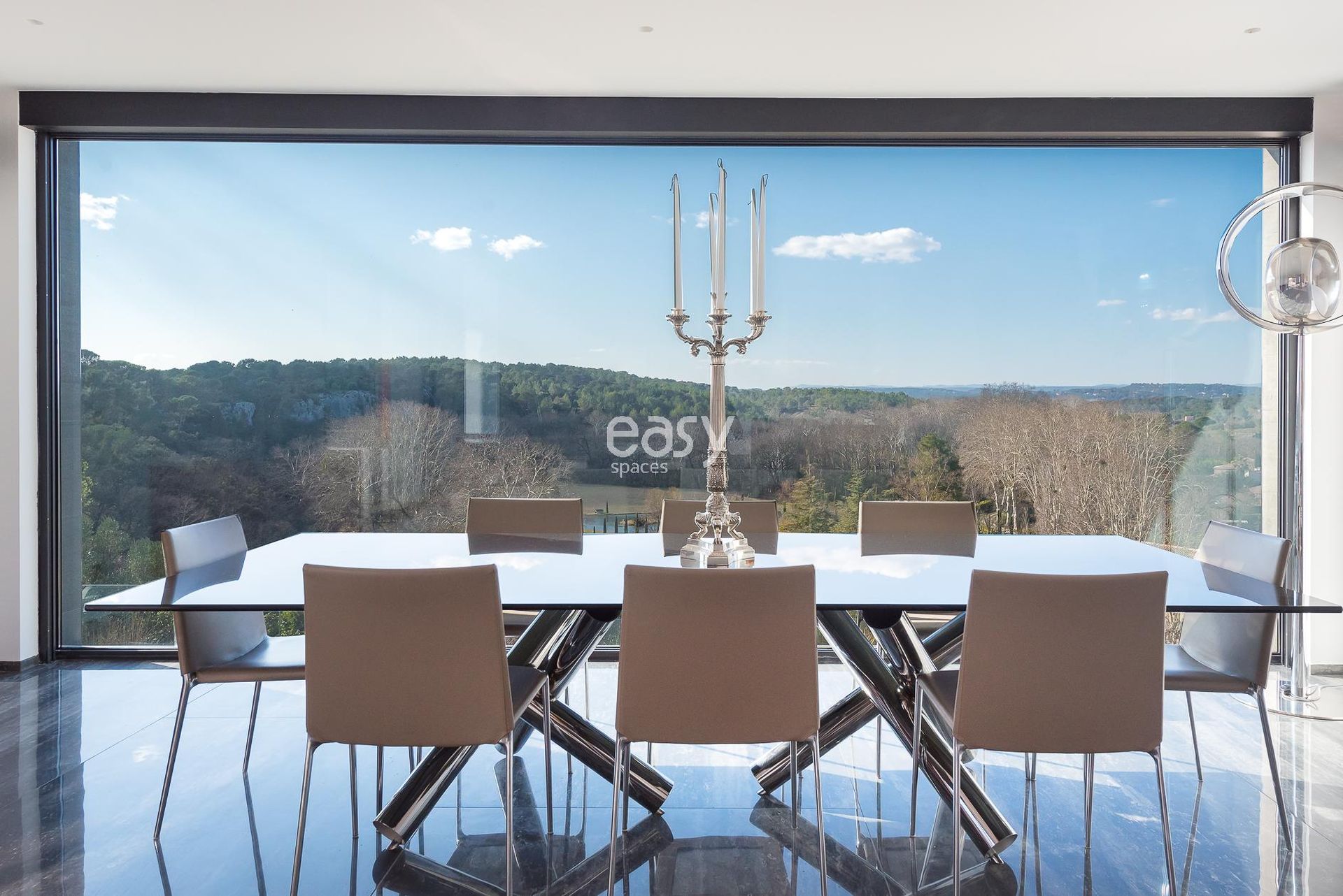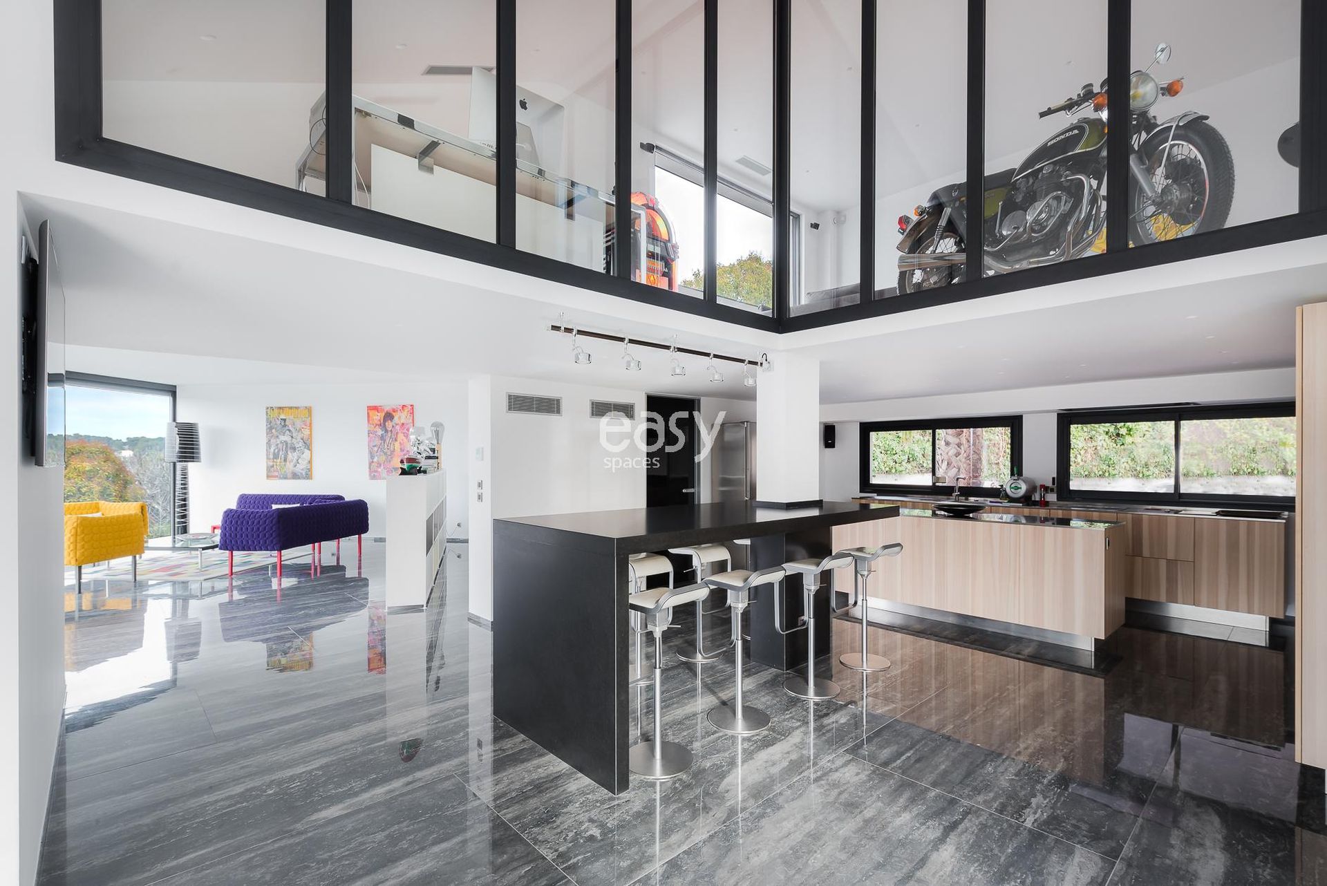 Cette maison d’architecte avec une décoration moderne et épurée, offre un grand espace lumineux de 150m2. Ses grandes baies vitrées offrant une vue dégagée, un amalgame de dedans/dehors, et sa piscine chauffée avec vue panoramique constituent un cadre privilégié pour tout projet artistique ou événement d'affaires.