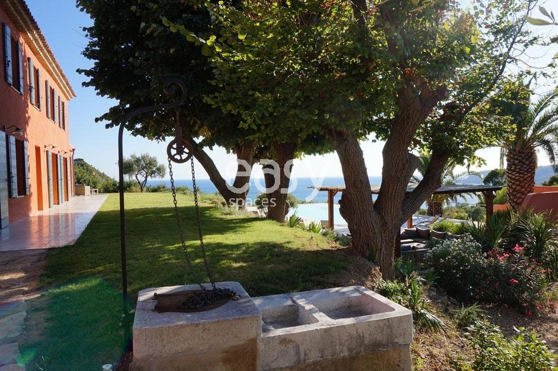 • Espaces extérieurs : jardin 7 500 m², piscine miroir 14 x 6,5 m, terrasses multiples