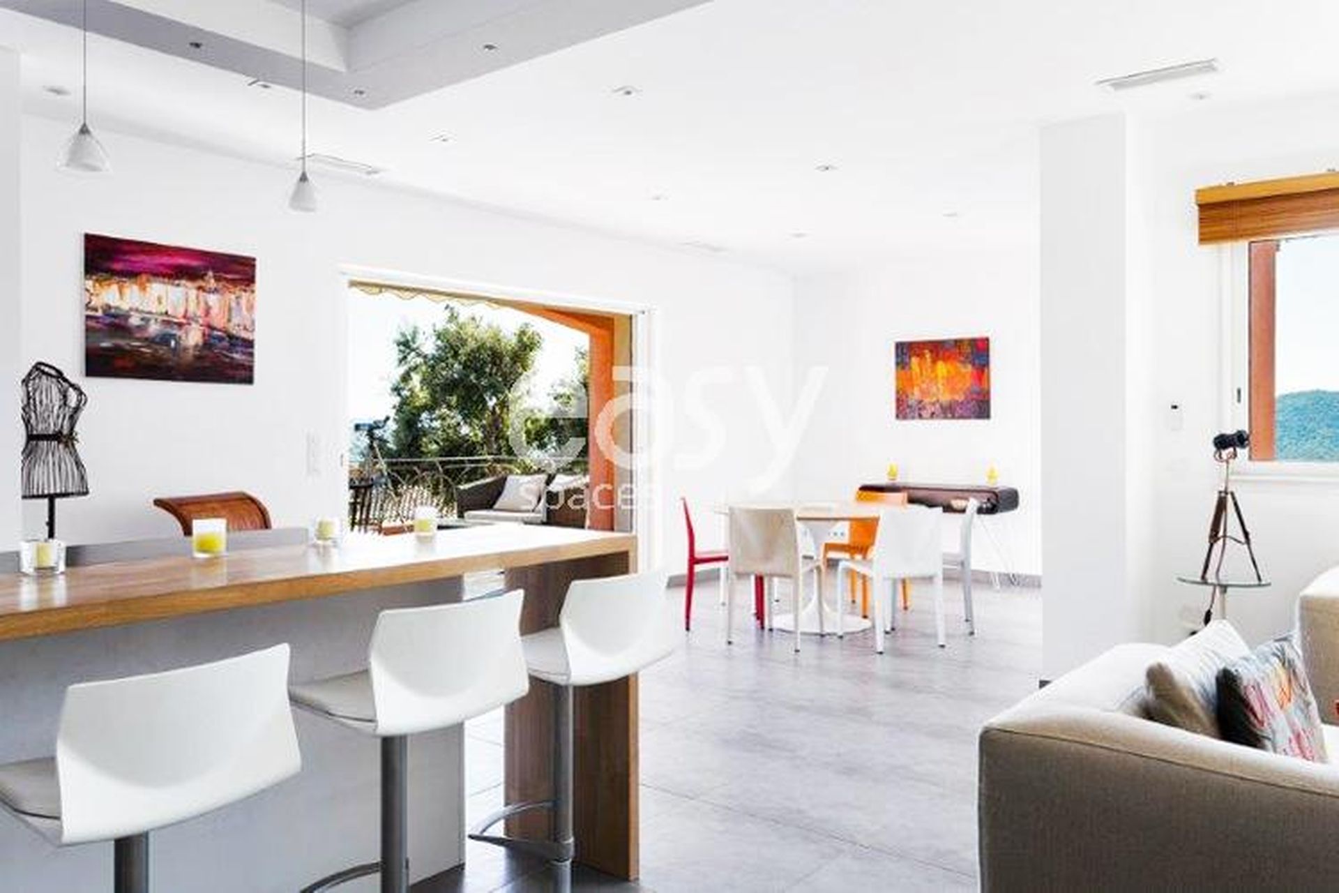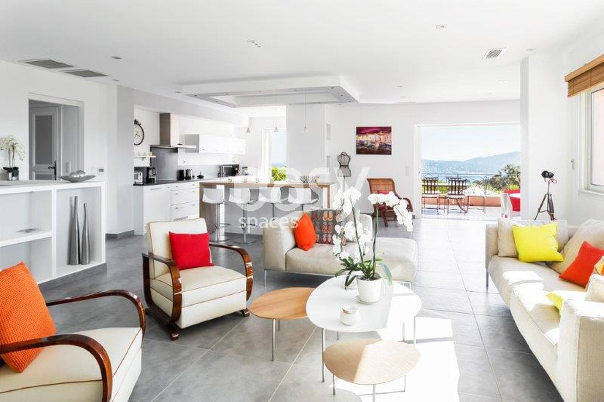 Très beau décor avec une décoration moderne et colorée. Un beau lieu de tournage idéal également pour des photos de mobilier de jardin ou pour un catalogue de décoration.