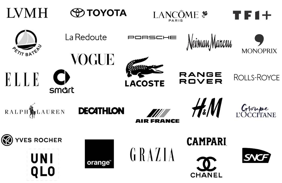 ELLE - GRAZIA - MARIE-CLAIRE - VOGUE - NUMERO MAGAZINE - TATLER - CAMPARI - L'OCCITANE - NEIMAN MARCUS - LACOSTE - ORANGE - AIR FRANCE - PORSCHE - RANGE ROVER - WINSTON - LA REDOUTE - ROLLS ROYCE - TOYOTA - H&M - SMART - CITRÖEN - ROC - DESSANGE - PUBLICIS - LANCÔME - CHANEL - ALINEA - FAÇONNABLE - MILK - INTERPARFUM - BETC EURO RSCG - MISAKI  -  MISAKI - SOSH - HANRO - ZILLI - DURACELL - NEIMAN MARCUS - BODEN - NATALYS - WALLPAPER - LA COMPAGNIE DES PETITS - CAROLINE BISS - SANOFI AVENTIS - AGENCE DDB - TF1 PRODUCTION - DECATHLON - LALIQUE  - HACKETT - PUBLICIS - JACQUELINE RIU - PETIT BATEAU - ELLE MAN - SNCF - LA FRANCAISE DES JEUX - MONOPRIX - THALGO - COTE MAGAZINE -REMISCENCE - RED CASTLE - LA PETITE REINE PRODUCTION  - OVIESSE - VANITY FAIR  - RENAULT - OLLY GAN - MENNEN - PHILIP MORRIS - ELESSE - VLAEMYNCK - VOGUE ESPAGNE - MARIE CLAIRE ITALIE - LAGARDÈRE - UNIQLO - FERMOB - LAFUMA -  SNCF - YVES ROCHER - LVMH - RALPH LAUREN - ZIMMERMANN - PHOEBE PHILO - BIOTHERM - DESCAMPS...
